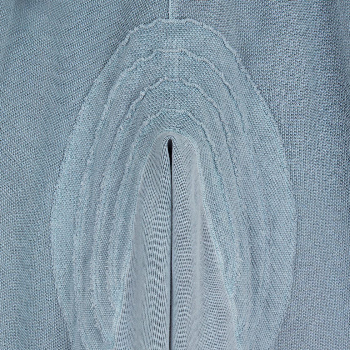 독특한 패치워크 느낌이 곳곳에 보이는 지안 예의 오빗 팬츠입니다. - 허리 조절 스트랩 - 뒷면 패치워크에 스트랩 - 3개의 구멍 모양의 포켓 - 염색의 물든 느낌의 아쿠아 색상