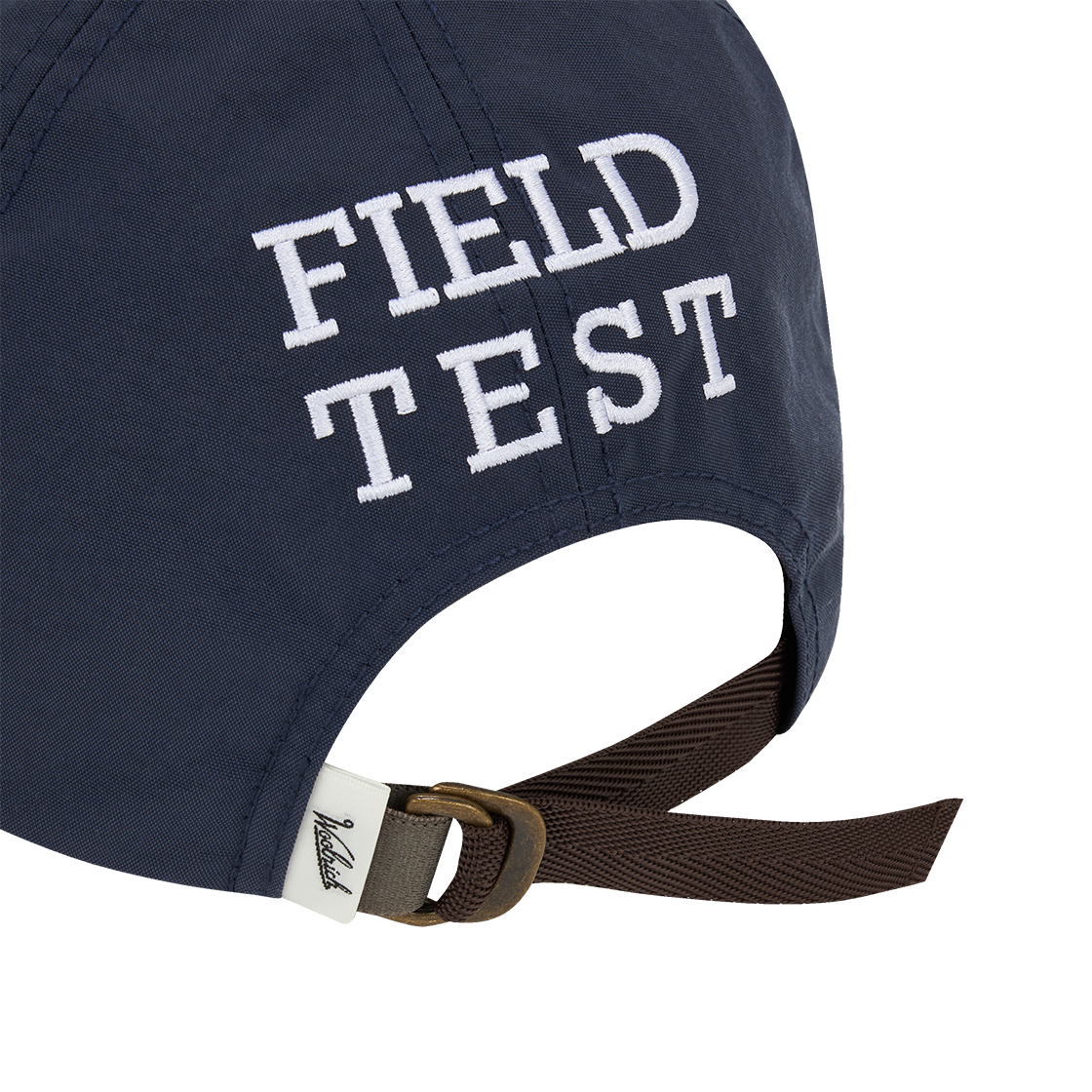 심플한 룩에 포인트가 될 수 있는 울리치의 리사이클 나일론 옥스포드 필드 테스트 캡 네이비입니다. - 화이트 로고 자수 디테일 - 사이즈 조절 가능