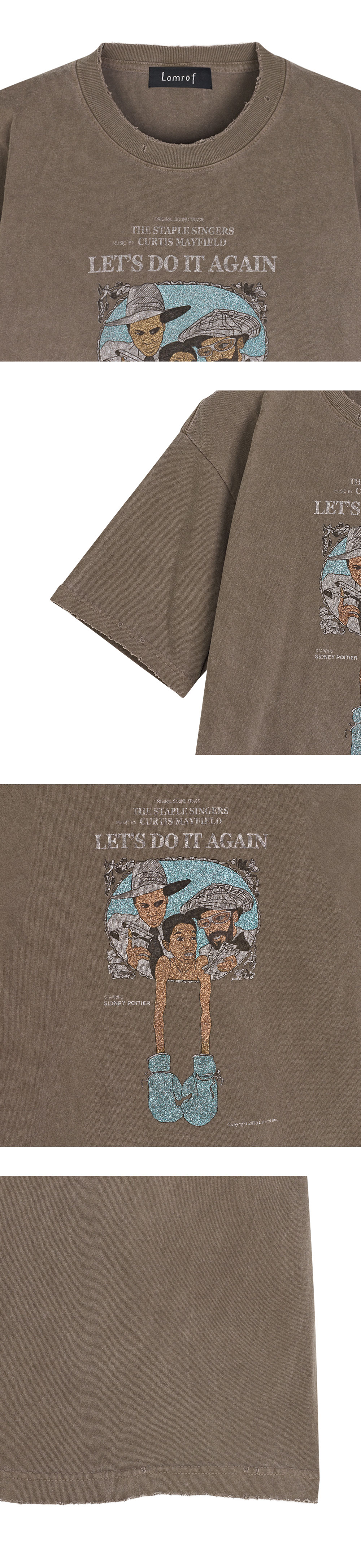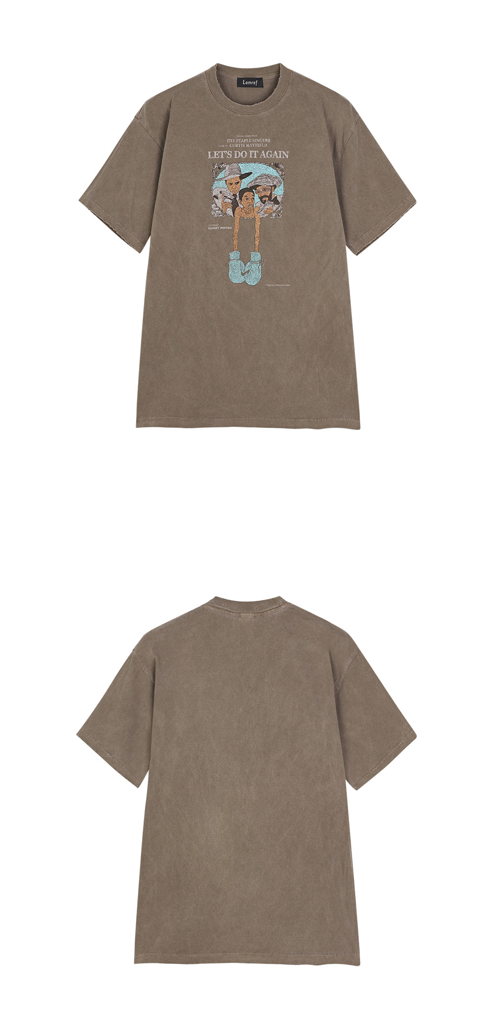 워싱으로 빈티지 무드를 물씬 풍기는 람로프의 B.L.P.M 티입니다. - 넥라인, 밑단, 소매에 디스트레스 디테일 - 워싱 브라운 - 핸드드로잉 라이크 그래픽