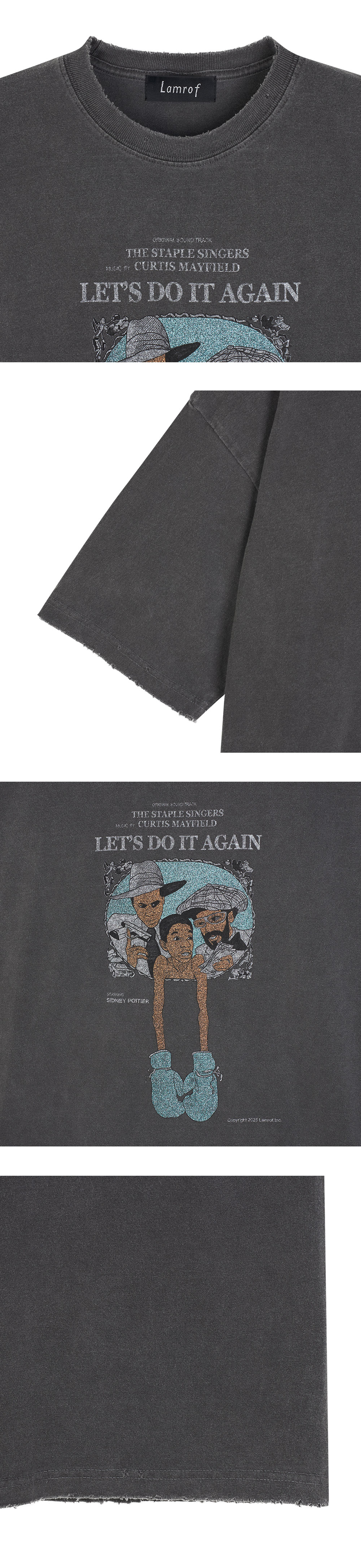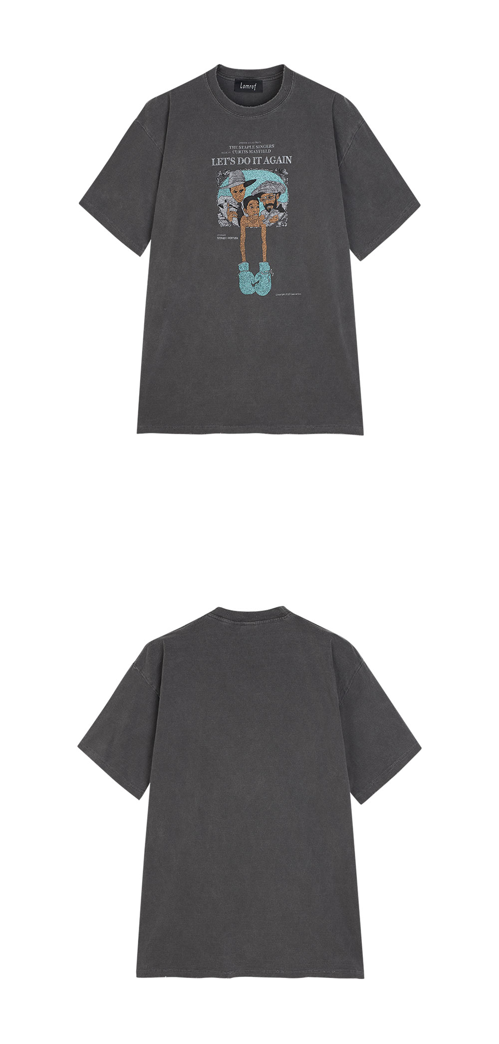 워싱으로 빈티지 무드를 물씬 풍기는 람로프의 B.L.P.M 티입니다. - 넥라인, 밑단, 소매에 디스트레스 디테일 - 워싱 블랙 - 핸드드로잉 라이크 그래픽