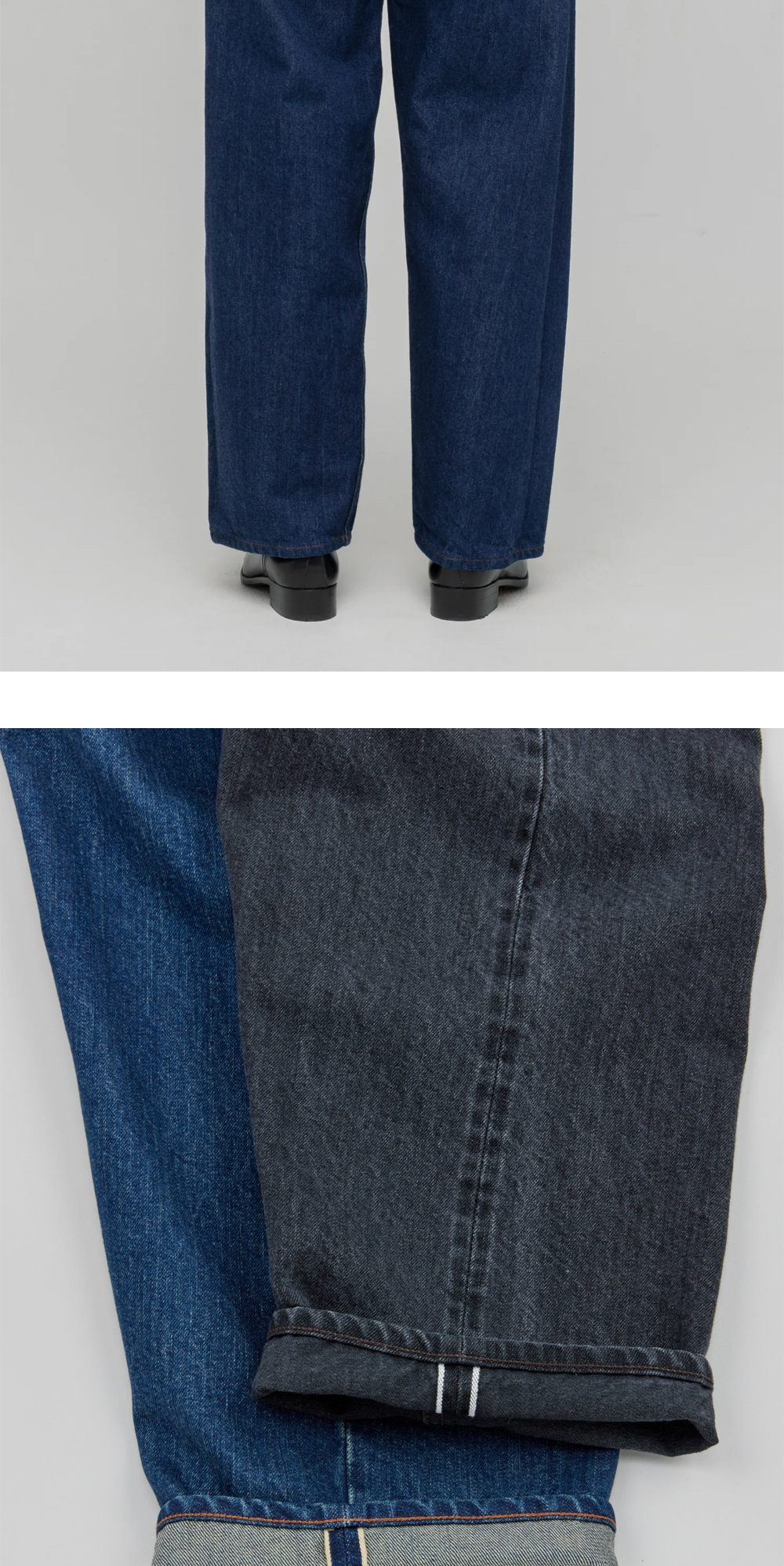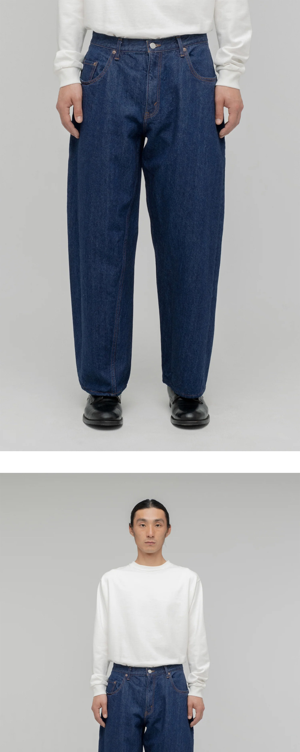 시오타 배기 5 포켓 팬츠 미디엄 다크 블루 데미지 - 25SS
