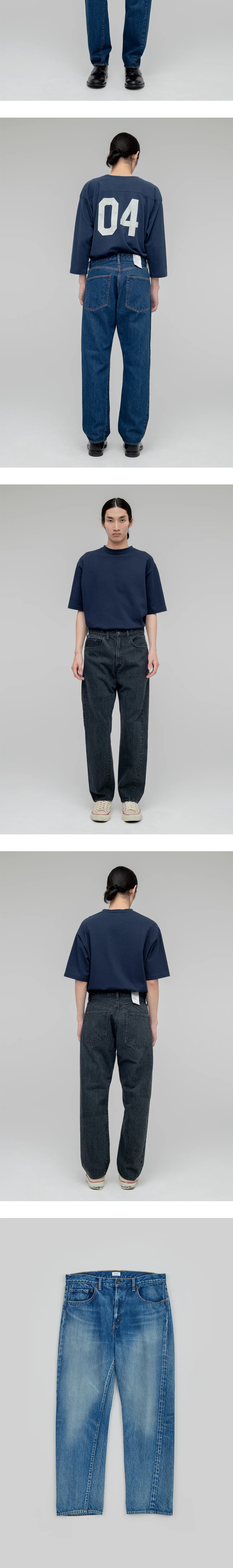 시오타 테이퍼드 5 포켓 팬츠 미디엄 다크 블루 데미지 - 25SS