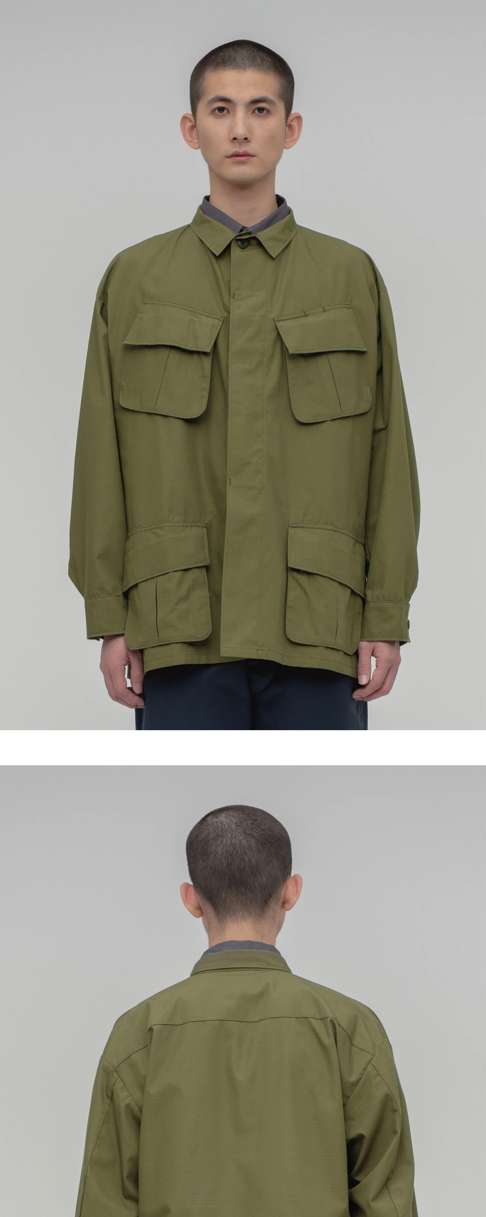 가볍고 편안한 착용감을 제공하는 시오타의 정글 퍼티그 자켓입니다. - 미군이 베트남 전쟁 당시 개발한 4th 모델을 모티브로 - 가볍고 튼튼한 립스톱 원단 - 가슴 부분의 사선 포켓 - 약간 긴 기장인 스몰-레귤러 핏 * 모델샷 일부는 동일 제품 블랙 컬러이며 상품 참고를 위한 컷입니다. * 모델 스펙: M-180cm, 005 사이즈 착용 / W-168cm, 003 사이즈 착용