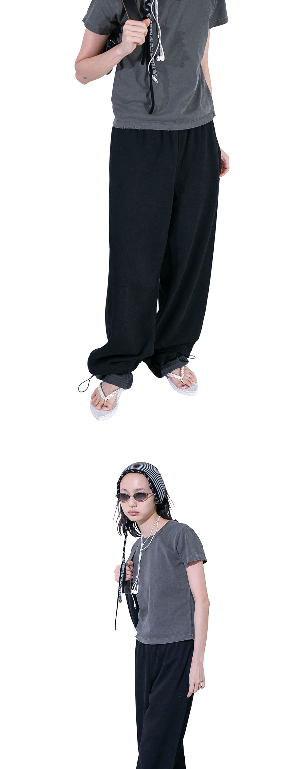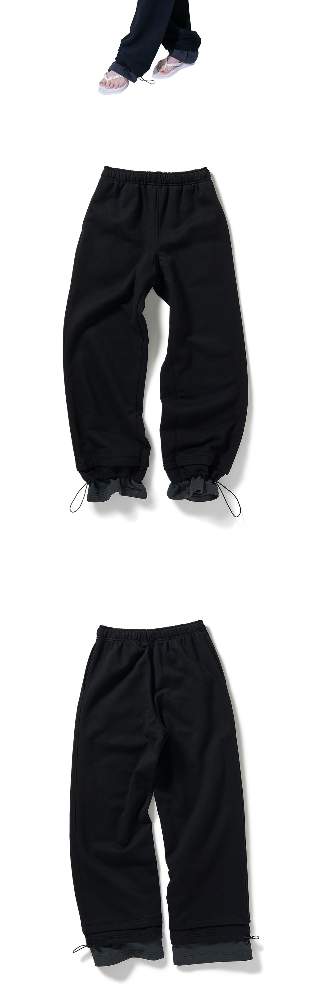 밑단의 스핀들 디자인이 매력적인 퍼버즈의 우먼 스텝 레이어드 스웨트 팬츠입니다. - 면 100% - 허리 밴딩 - 밑단 레이어드 디자인 - 밑단 스핀들