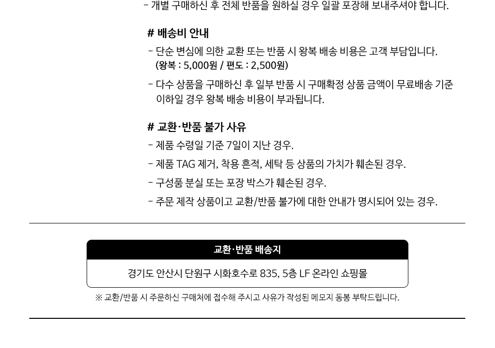 브랜드배송 2,500원 5만원 이상 구매 시 배송비 무료