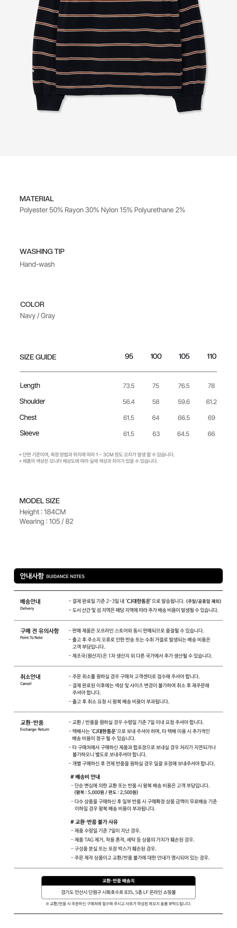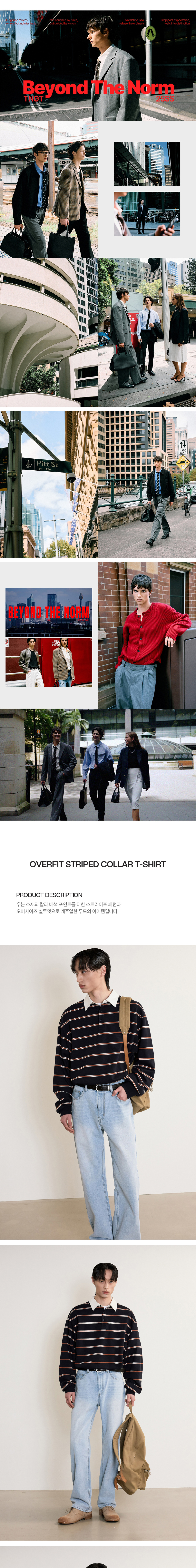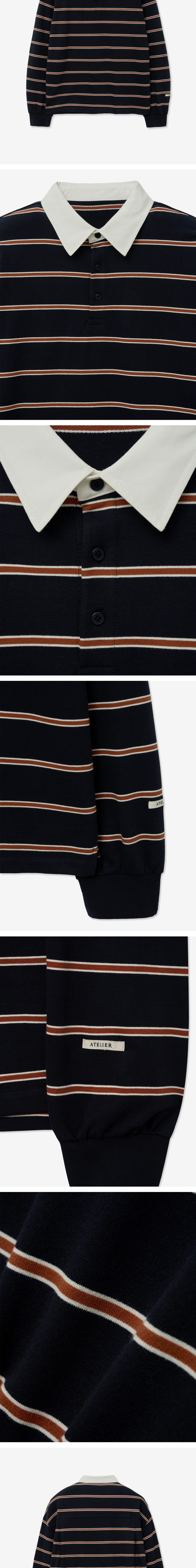 티엔지티 오버사이즈 스트라이프 칼라 티셔츠 네이비