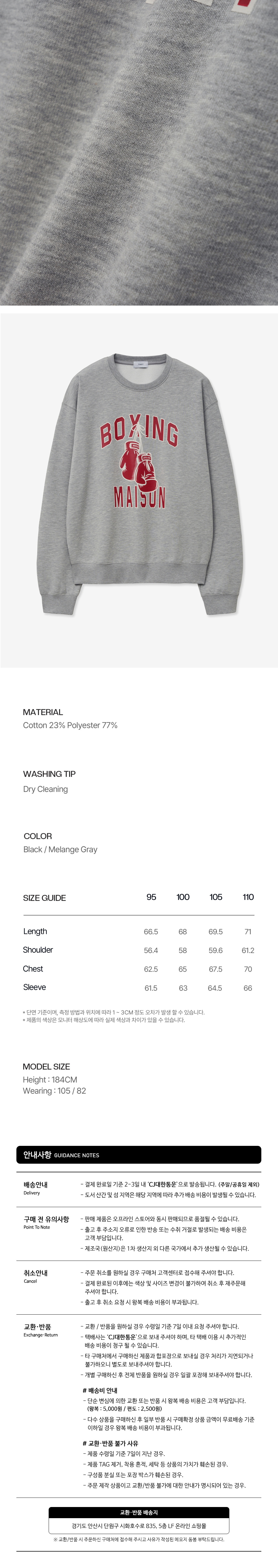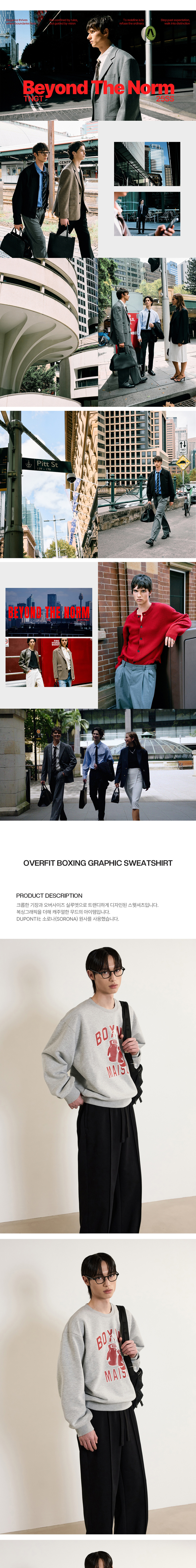 티엔지티 오버사이즈 복싱그래픽 스웻셔츠 멜란지그레이