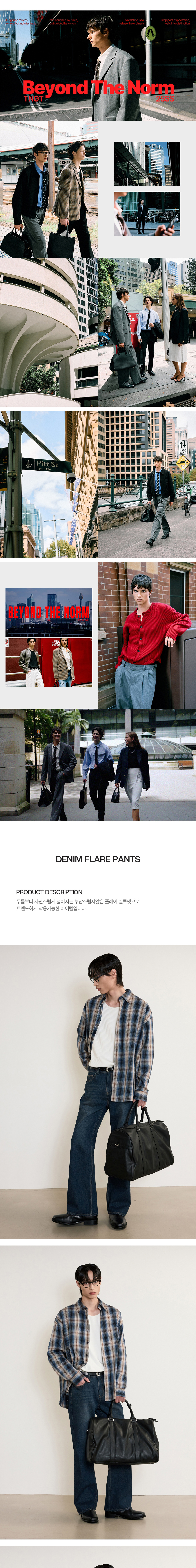 티엔지티 데님 플레어 팬츠 워시드블루