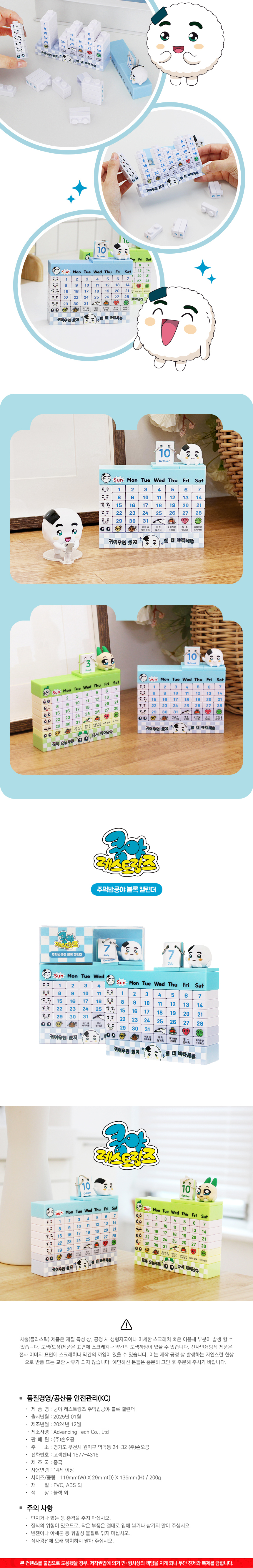 쿵야 레스토랑즈 주먹밥 쿵야 블록 캘린더