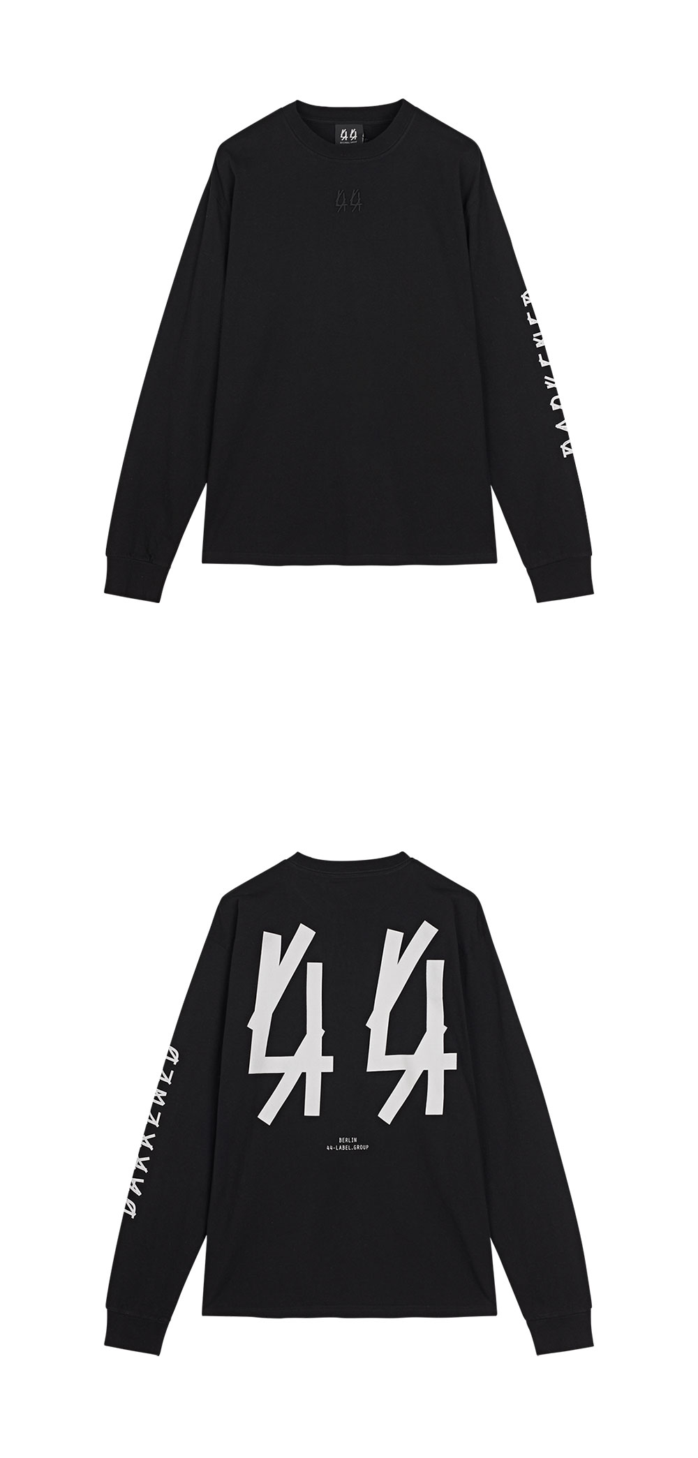 브랜드 로고만으로 포인트가 되는 44 레이블 그룹의 다크 롱슬리브입니다. - 앞면에 로고 자수 - 소매와 뒷면에 프린팅 - 100% 코튼 소재의 유니섹스 롱슬리브