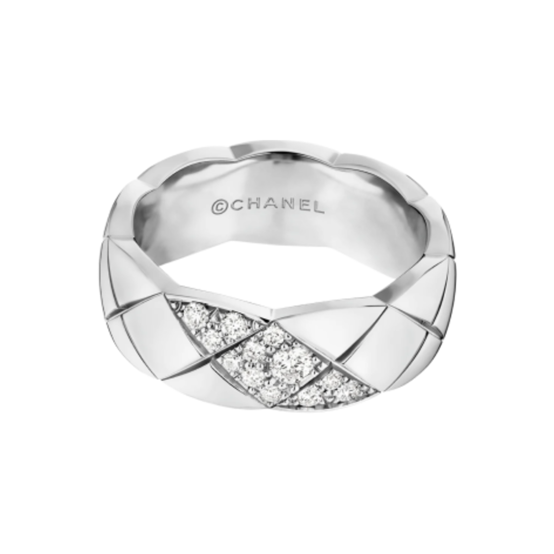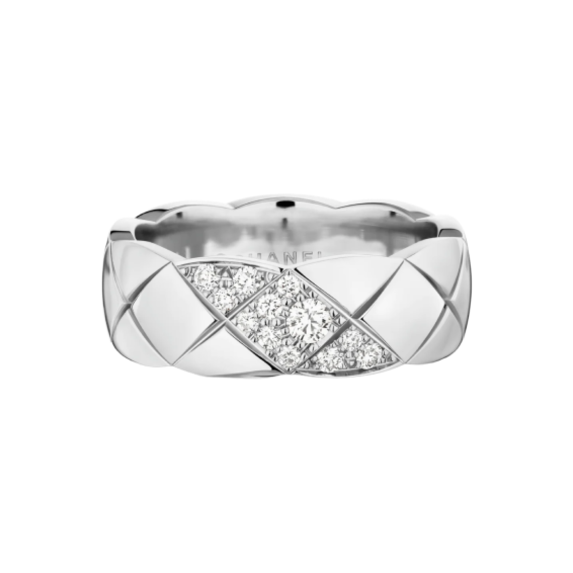 Chanel Coco Crush Ring Quilted Motif Small & 18K White Gold Diamonds
