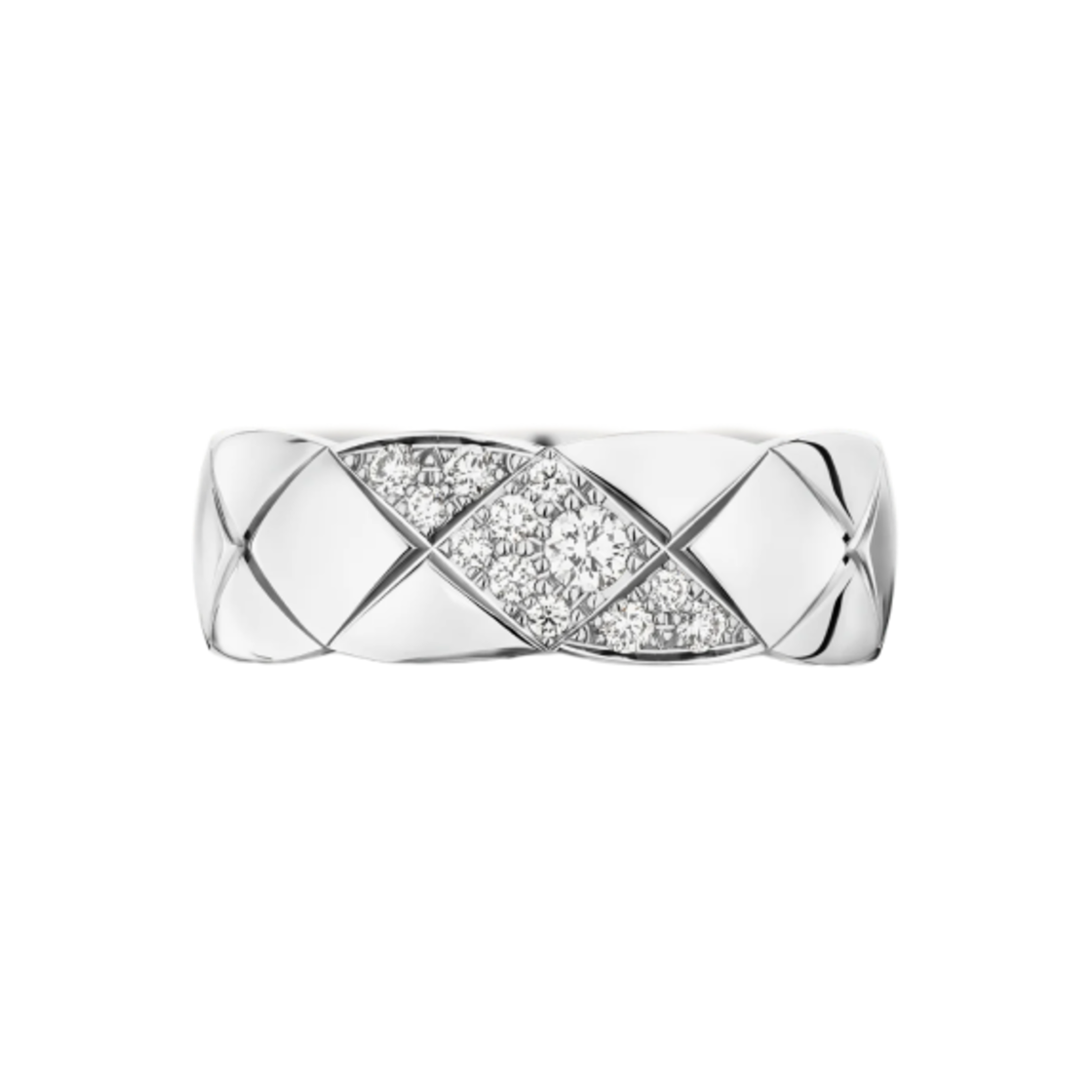 Chanel Coco Crush Ring Quilted Motif Small & 18K White Gold Diamonds