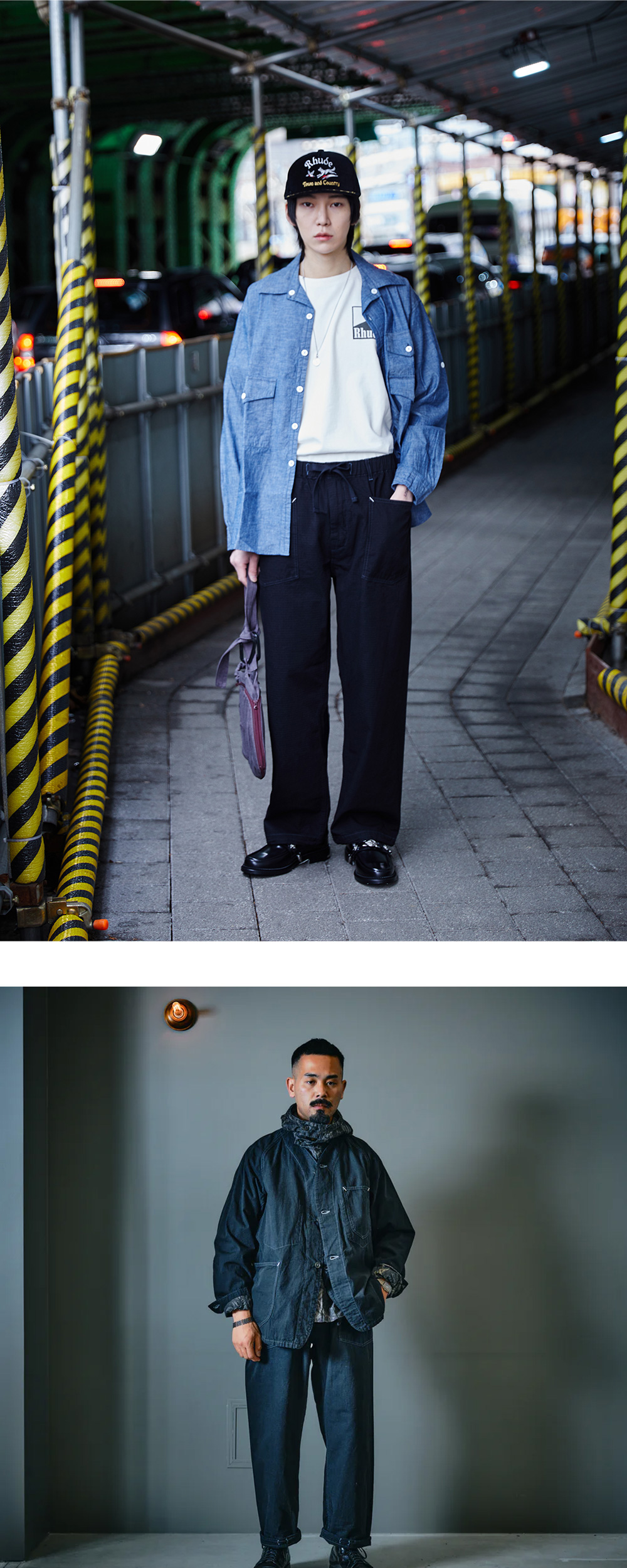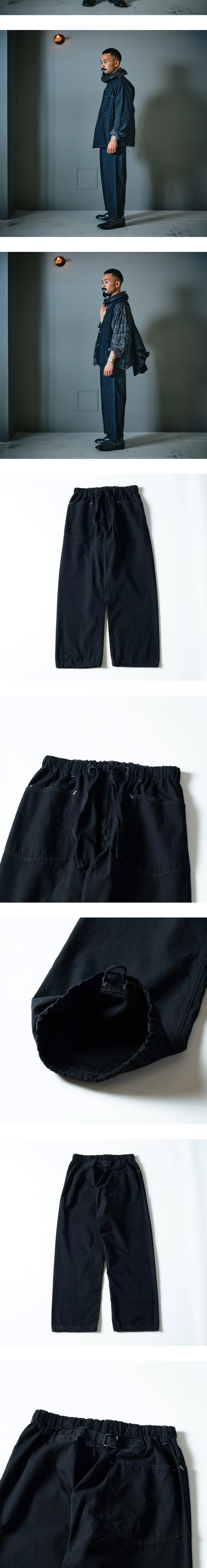 이전의 여러 바지를 혼합하고 업데이트해 만들어진 포스트 오버롤즈의 E-Z 아미 네이비 팬츠 2입니다. - 처음엔 두 개의 바지를 혼합해 2008년 버전으로 제작 - 2008 버전에 백벨트를 추가해 리뉴얼한 것이 2017FW - 여기에 웨스트를 이지화해 업그레이드