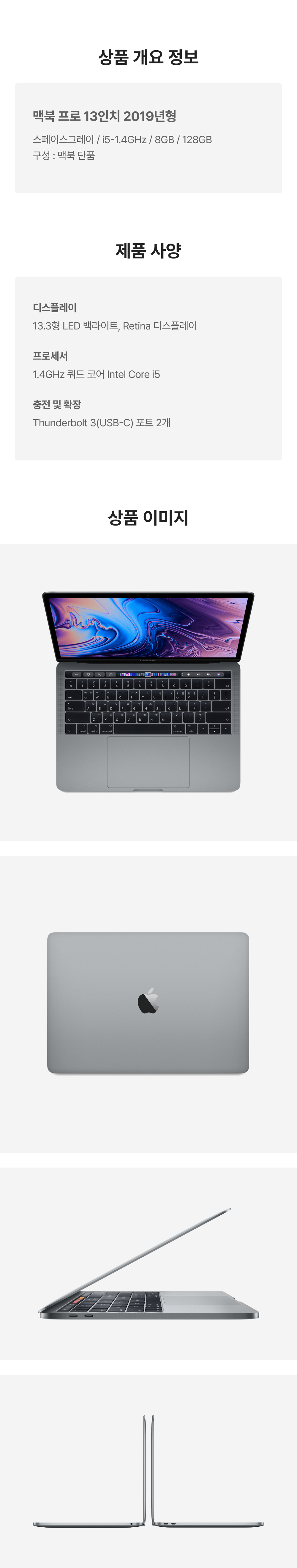 [B등급] 리퍼비시 2019 맥북 프로 13 i5-1.4GHz 128기가 SSD 8기가 램 스페이스그레이
