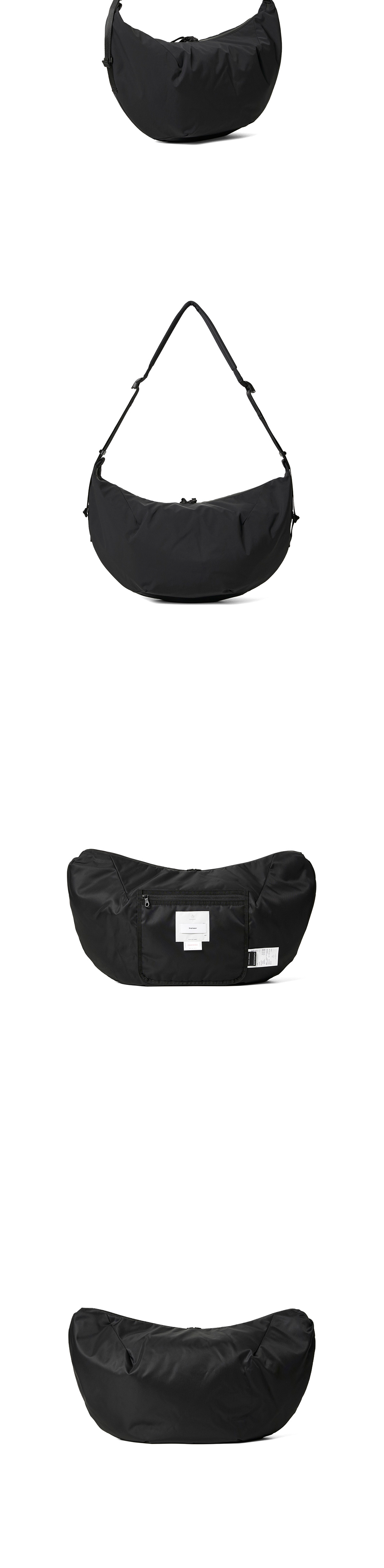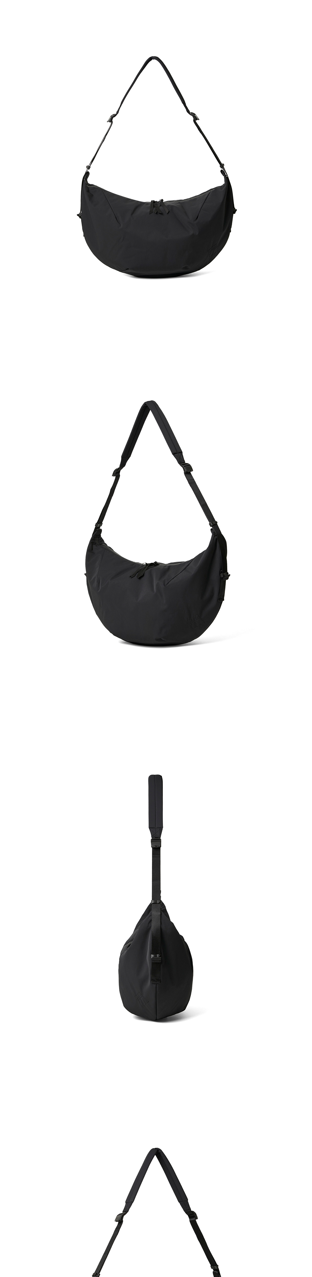 초승달 모양을 기반으로 디자인된 크로스백 입니다. 어깨끈 조절 가능하며 내부의 지퍼 포켓으로 추가적인 수납이 가능합니다. 내부에 패딩 안감을 덧대어 외부로부터의 충격을 완화하고 형태감을 유지해줍니다. 수년간 연구로 직접 개발하여 제작한 ROOTSCOPE® GIM 는 솔라 트윌 조직의 나일론 원단으로 바스락 거리는 터치감과 가볍지만 견고한 것이 특징입니다. DWR 가공과 래미네이팅 후가공된 3 Layer 원단 및 YKK® AquaGuard 지퍼를 사용하여 생활 발수 및 방수에 알맞게 제작되었습니다. 외관상 보이는 지퍼는 YKK® AquaGuard 지퍼를 사용하여 생활 방수에 알맞습니다. 고밀도 웨빙 스트랩으로 내구성이 좋습니다.