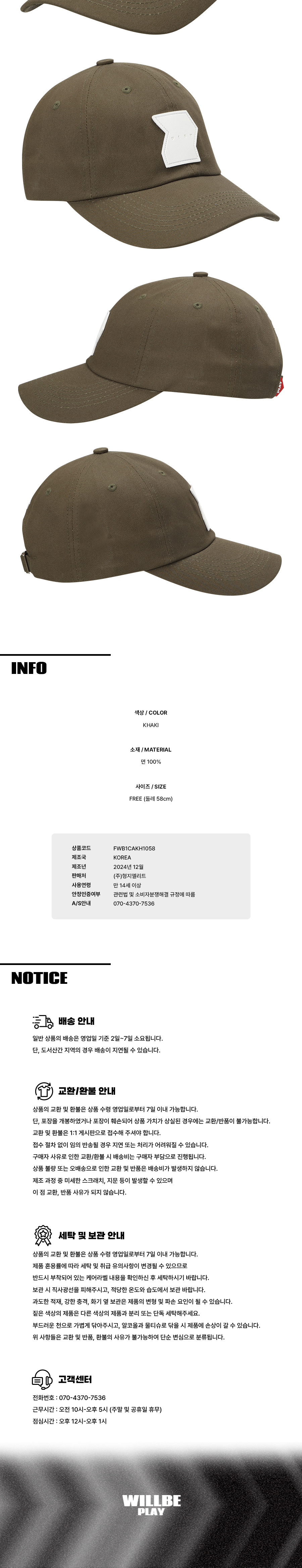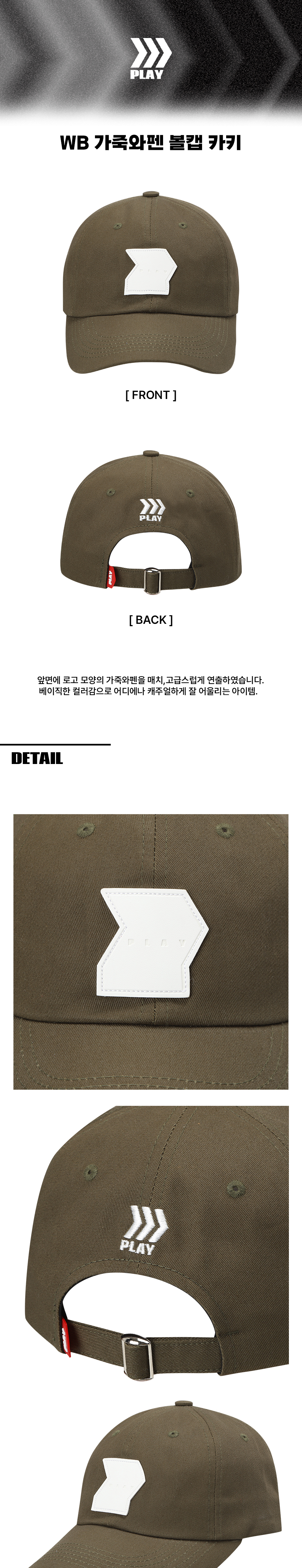 윌비플레이 가죽 와펜 볼캡 카키