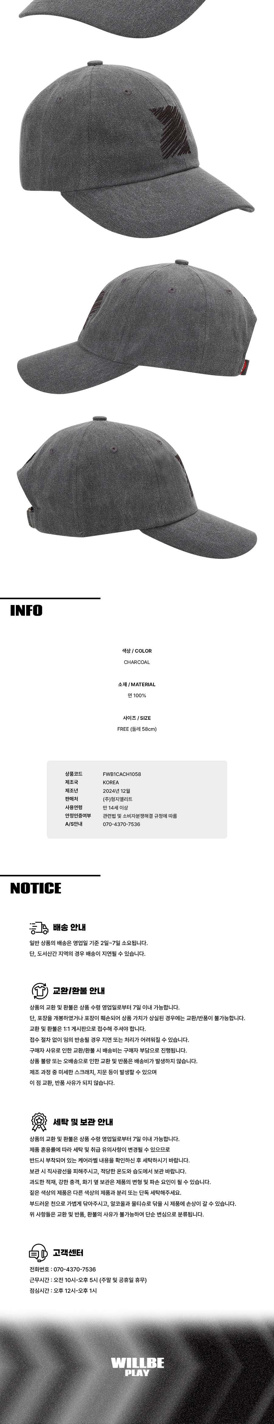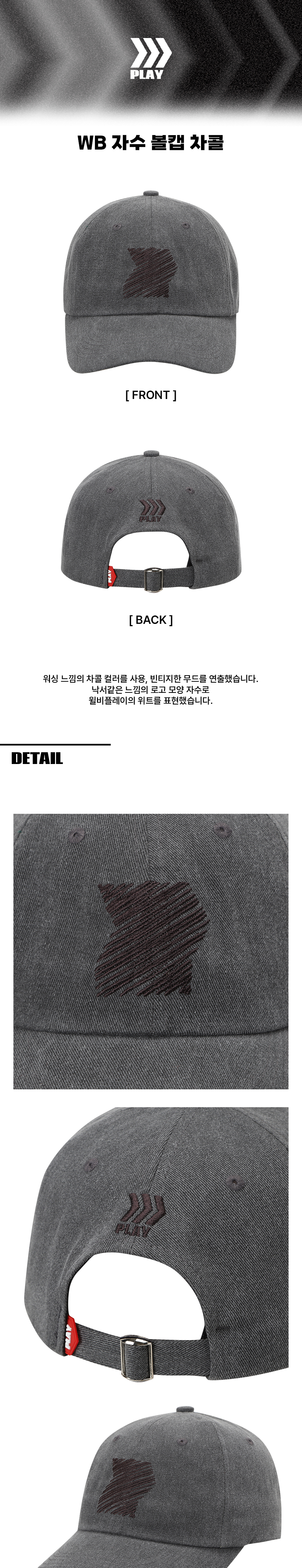 윌비플레이 자수 볼캡 차콜