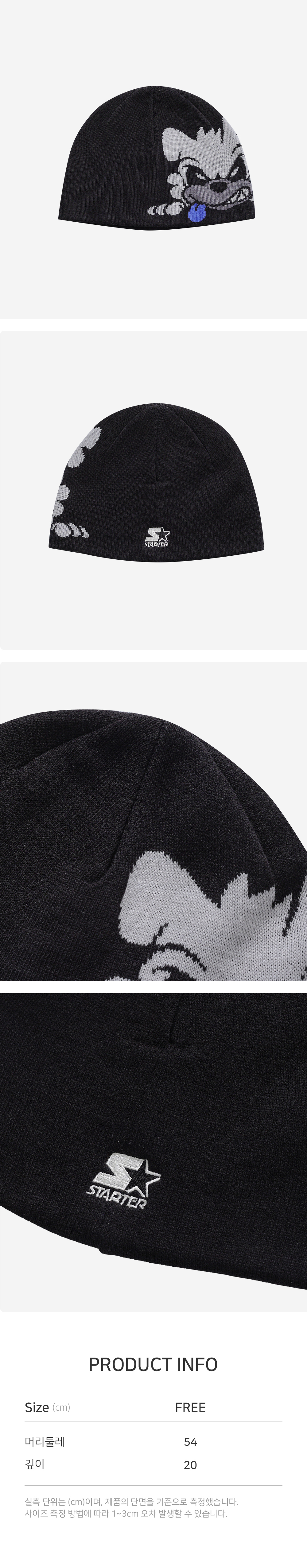 노립 형태의 비니로 제작되었으며, 베이스크림의 시그니처인 쿠카 캐릭터가 옆편에 자카드 공법으로 디자인되어 포인트를 더해줍니다. 후면부엔 스타터의 로고 자수가 들어가 있어 스타터의 정체성을 보여주는 아이템 입니다.