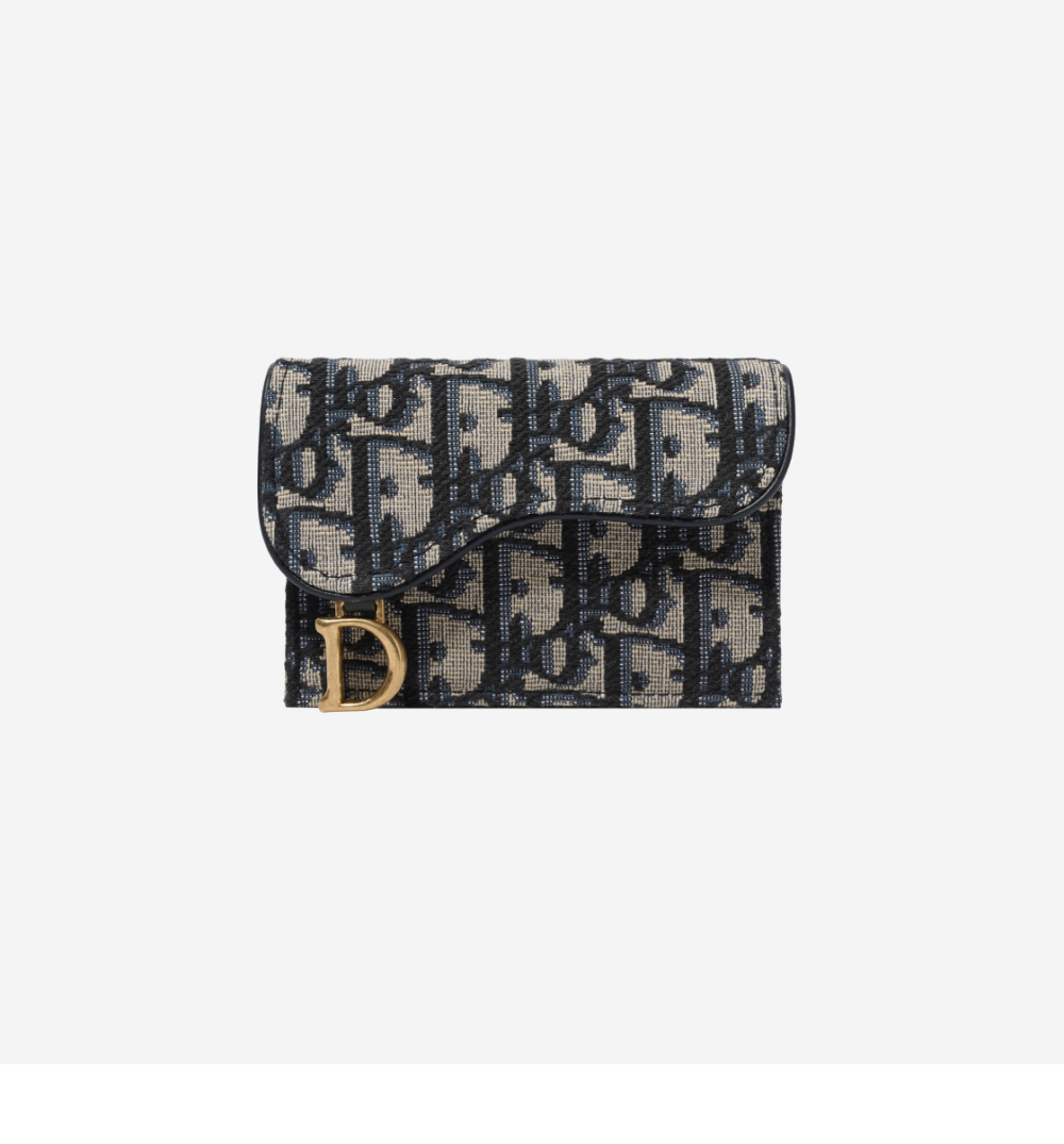 Dior Saddle Flap Card Holder Blue Dior Oblique Jacquard