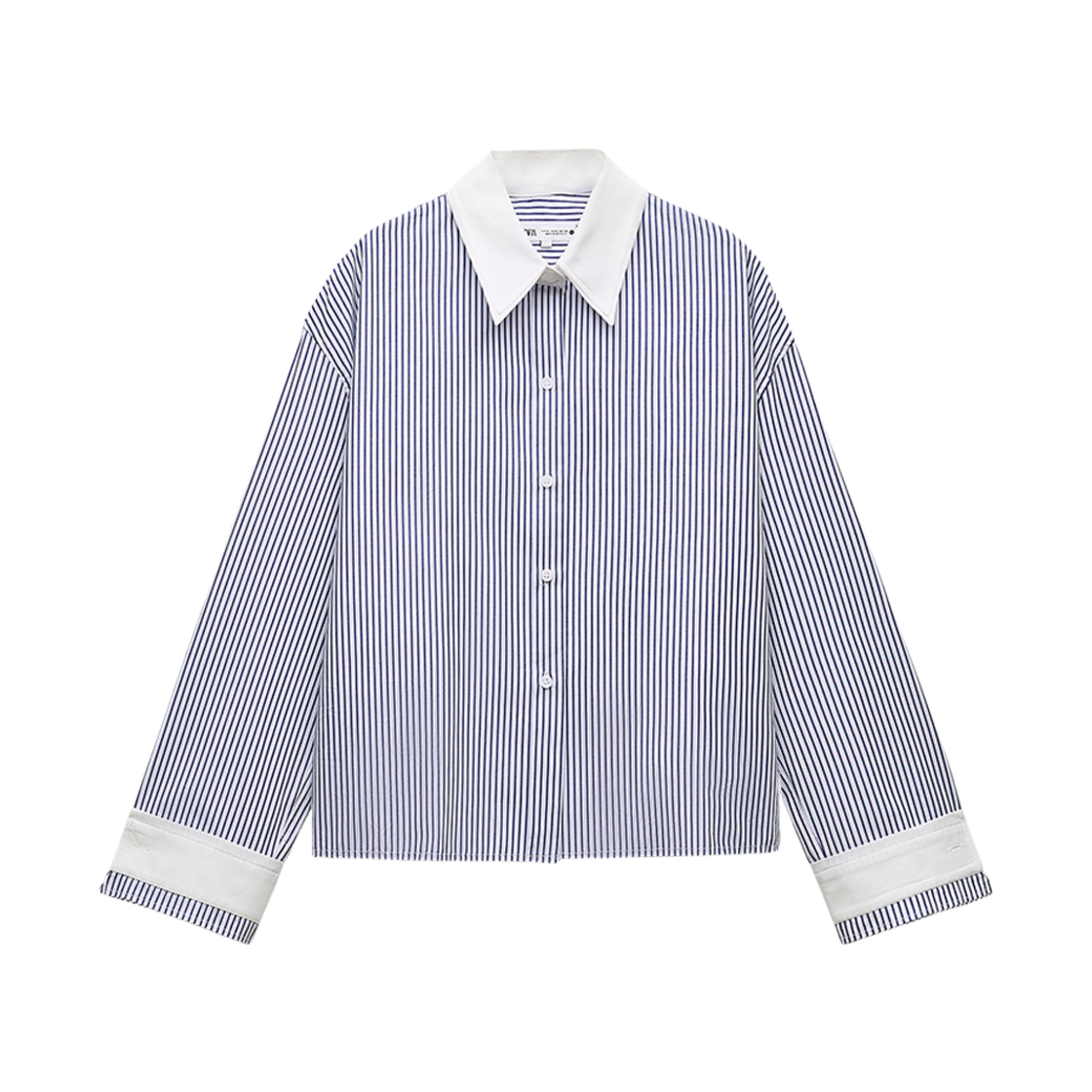 (W) 자라 ZW 컬렉션 스트라이프 셔츠 네이비