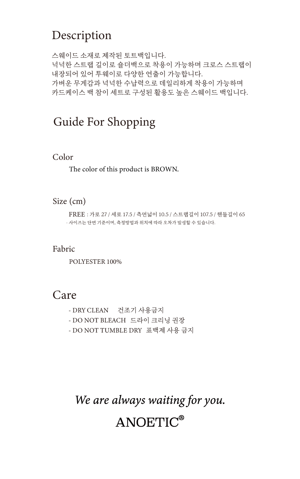 아노에틱 스웨이드 토트백 위드 카드케이스 카라멜