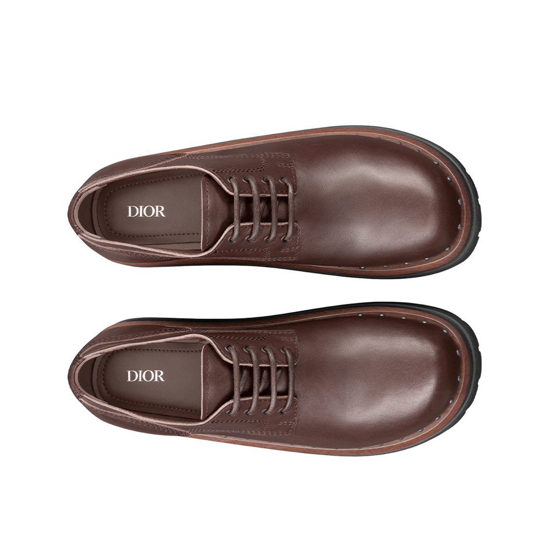 Dior Cape Town Derby Shoe Smooth Calfskin and Silver Tone Studs Brown Silver