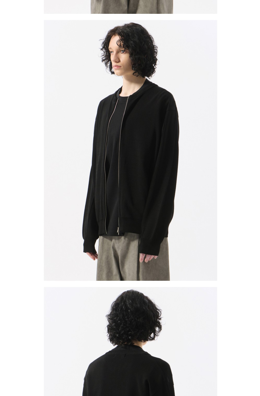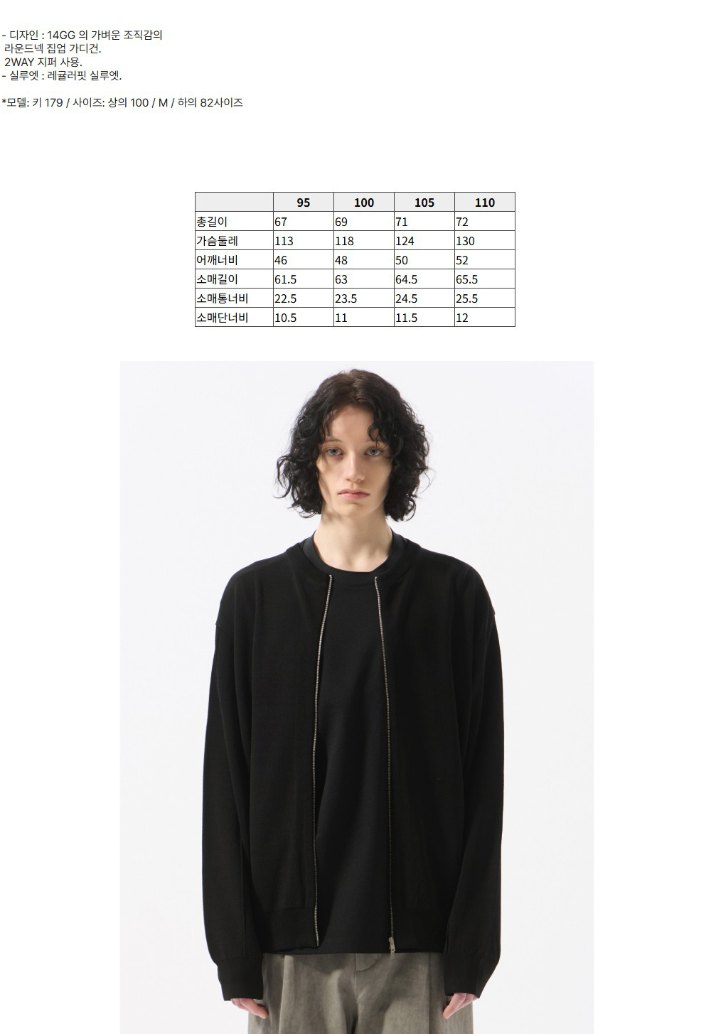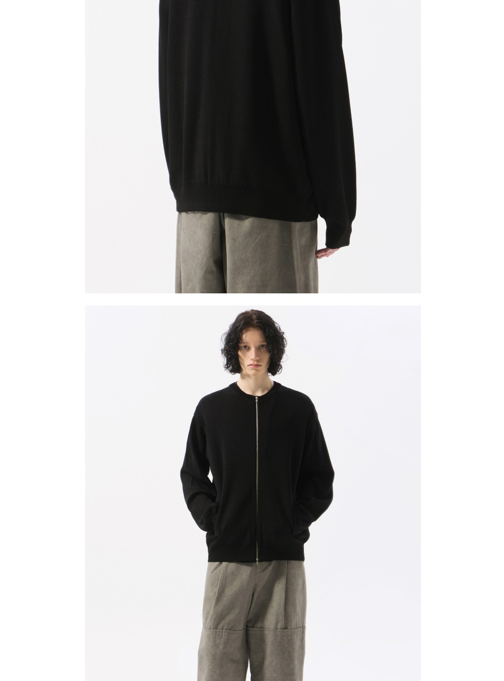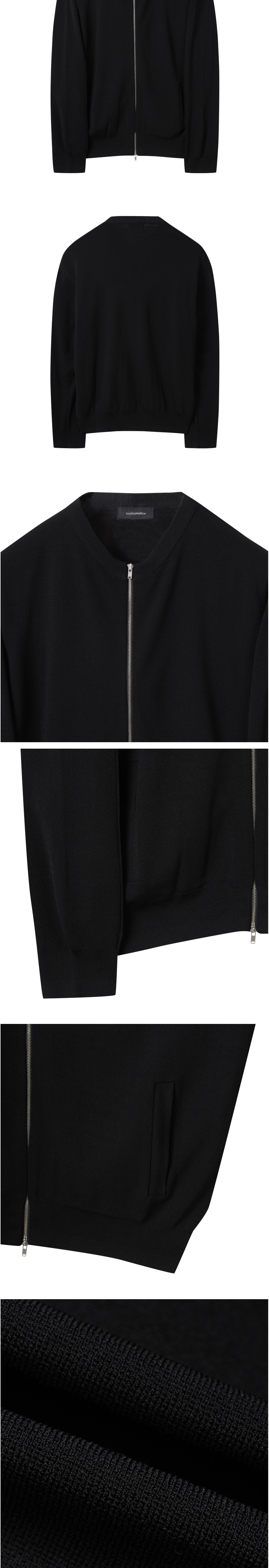커스텀멜로우 라운드 넥 집업 가디건 블랙