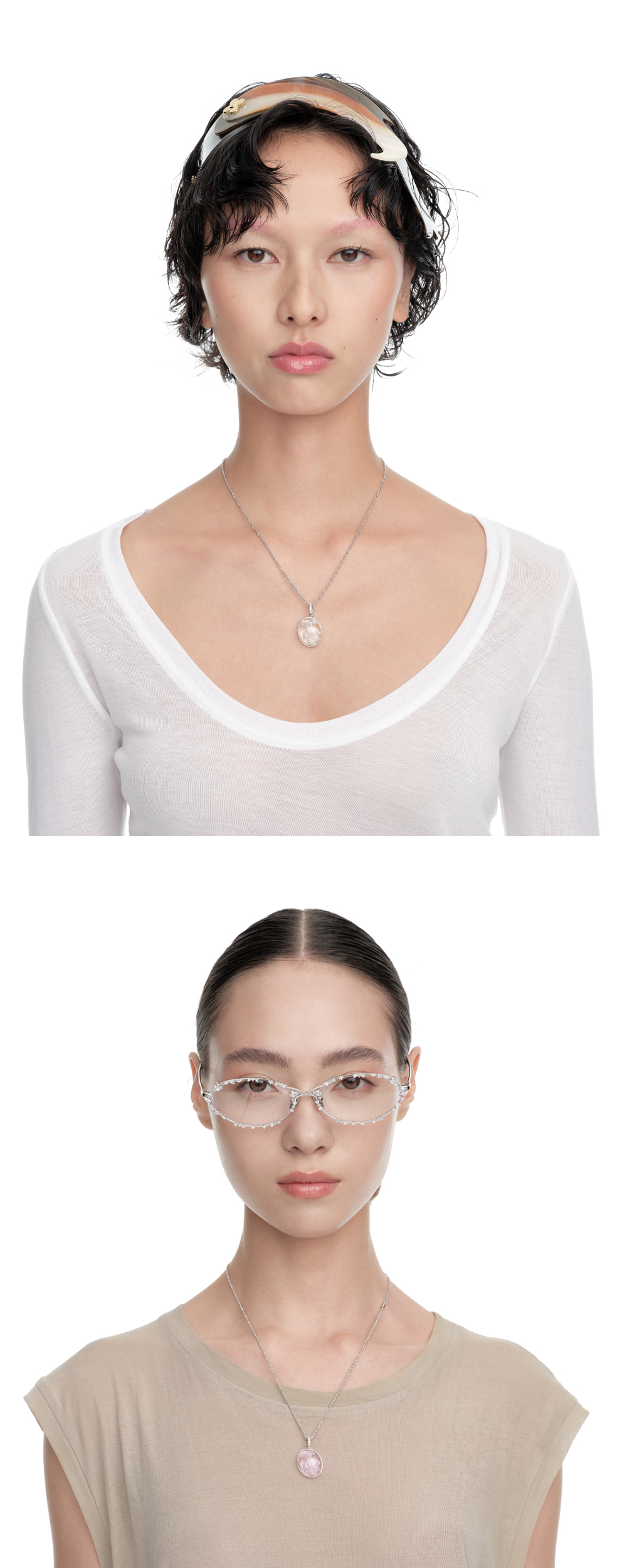 위민 크리스탈 베어 오벌 펜던트 네클리스 핑크 - 25SS