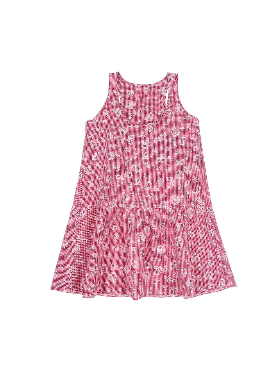 폴리 여성 로맨틱 깅엄 홈 슬립 드레스 레드