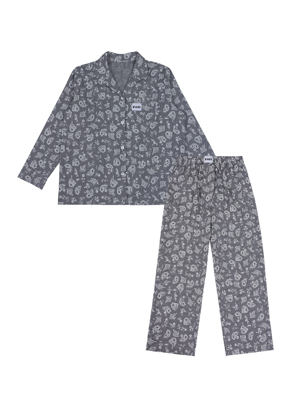 폴리 유니섹스 로맨틱 깅엄 긴팔 긴바지 파자마세트 블랙