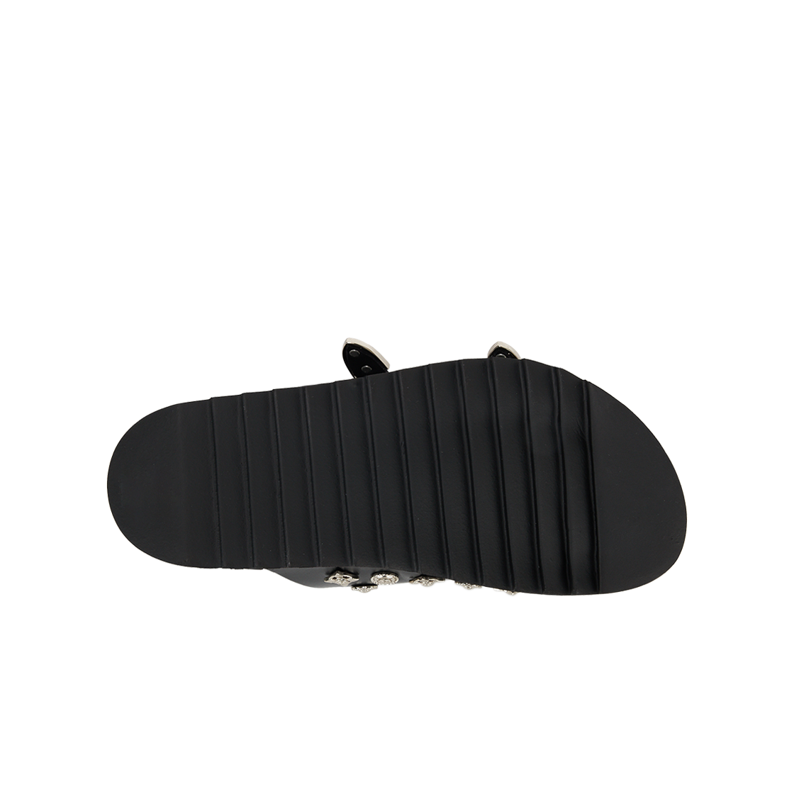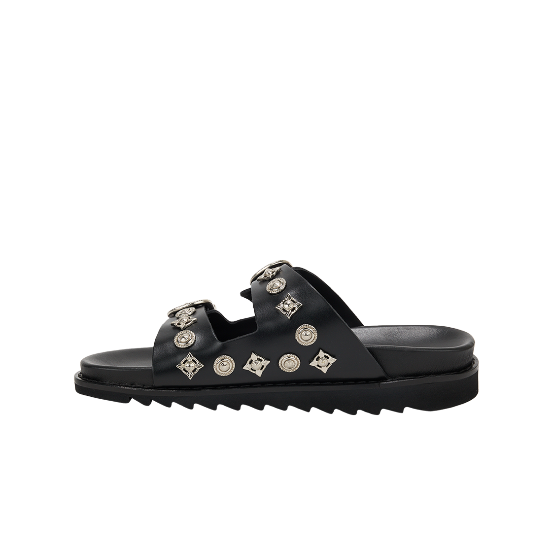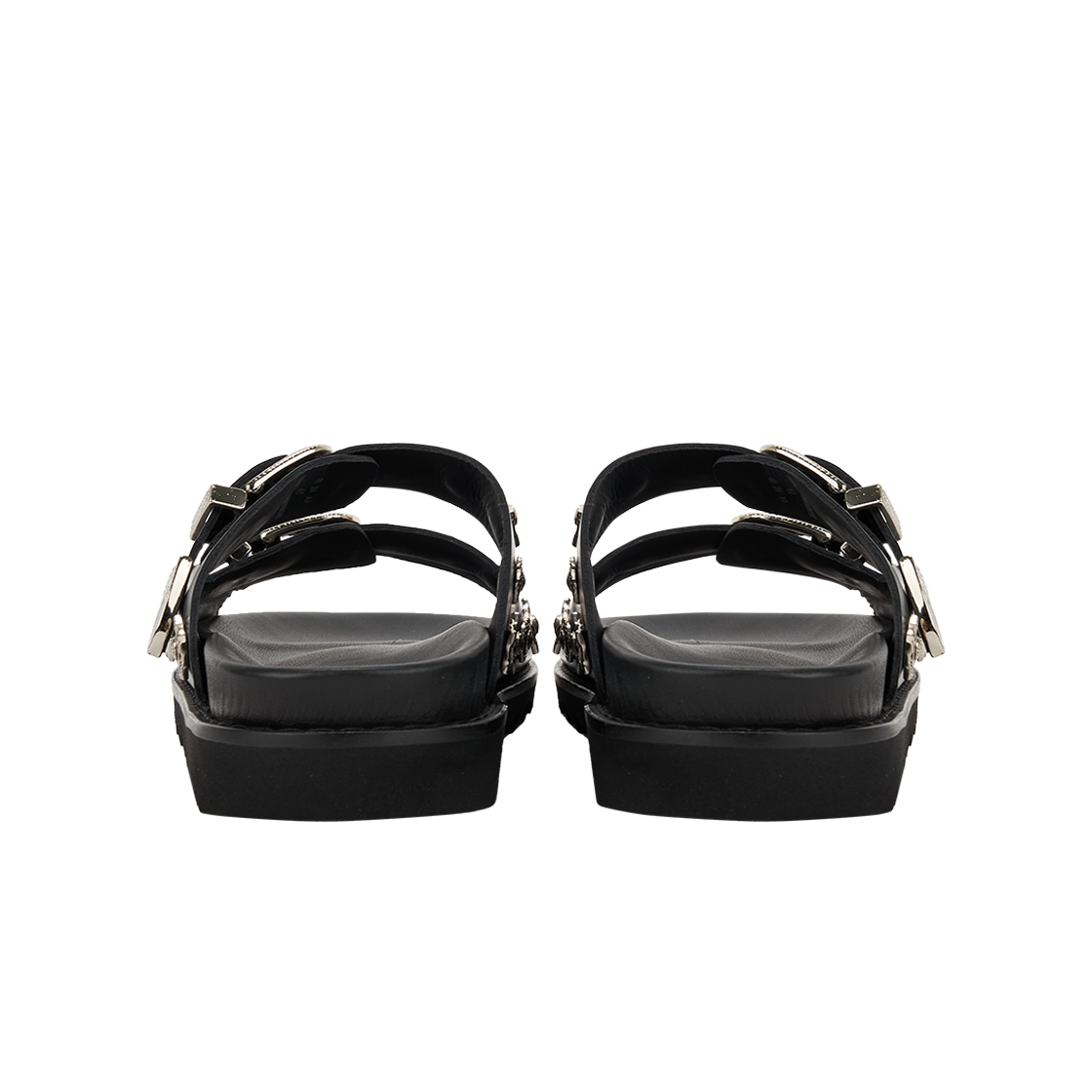 버클 금속 장식이 포인트인 토가의 비릴리스 AJ830 레더 블랙입니다. - 전체에 시그니처 그래픽 하드웨어 - 부드러운 깔창 - 사이즈 조정 가능한 버클
