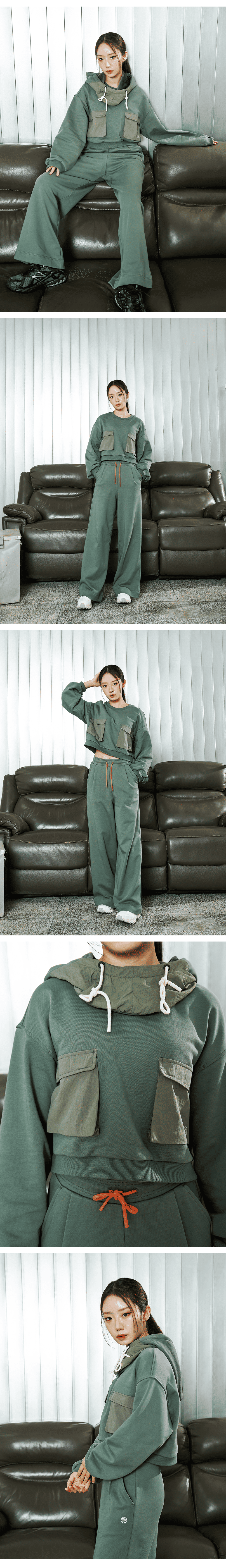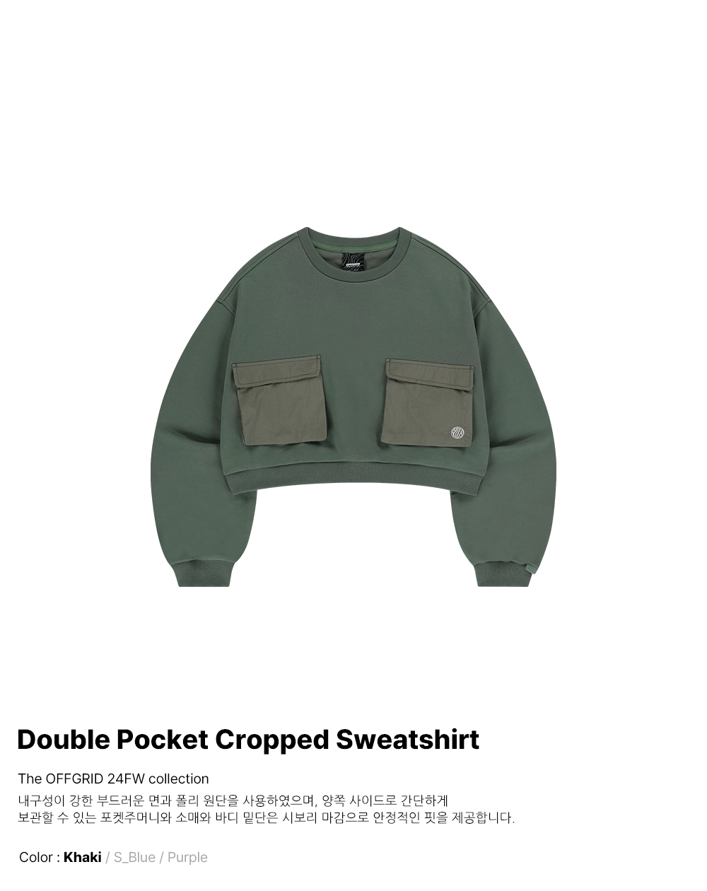 오프그리드 더블 포켓 크롭 맨투맨 카키
