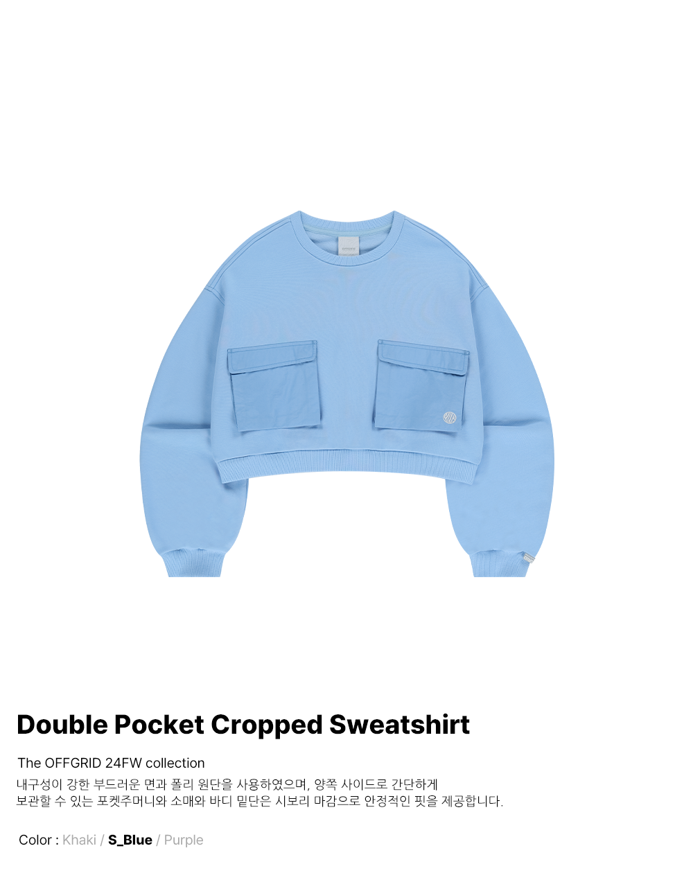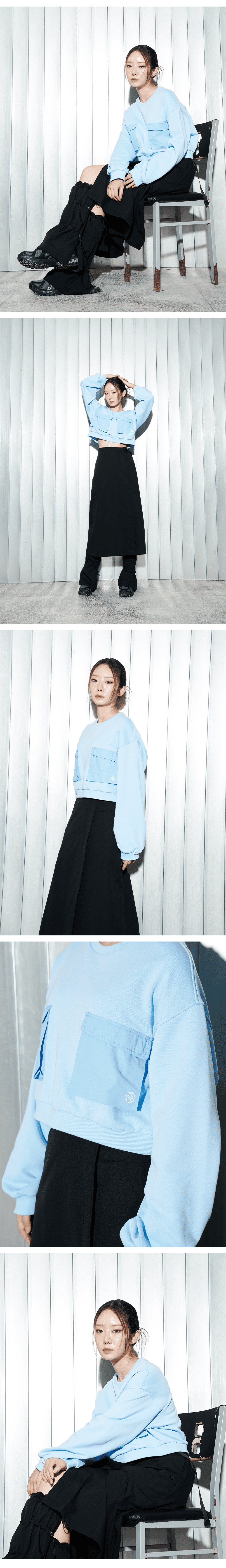 오프그리드 더블 포켓 크롭 맨투맨 스카이 블루