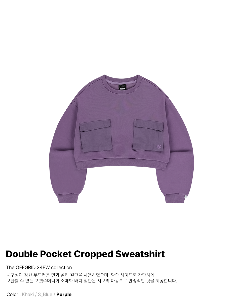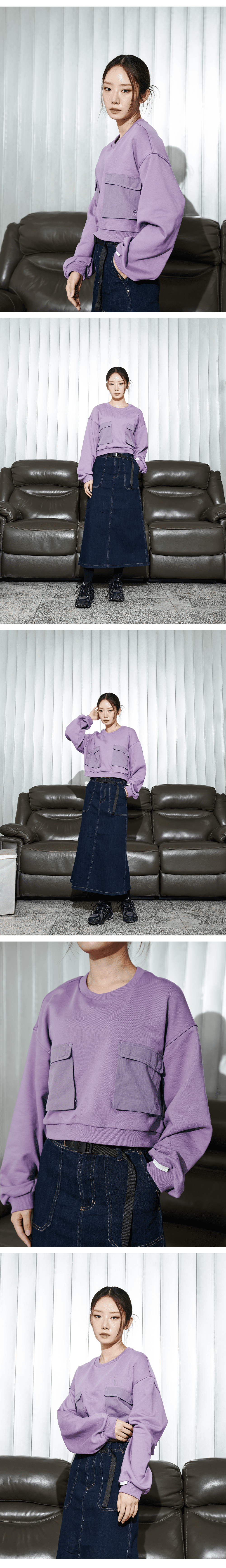 오프그리드 더블 포켓 크롭 맨투맨 다크퍼플
