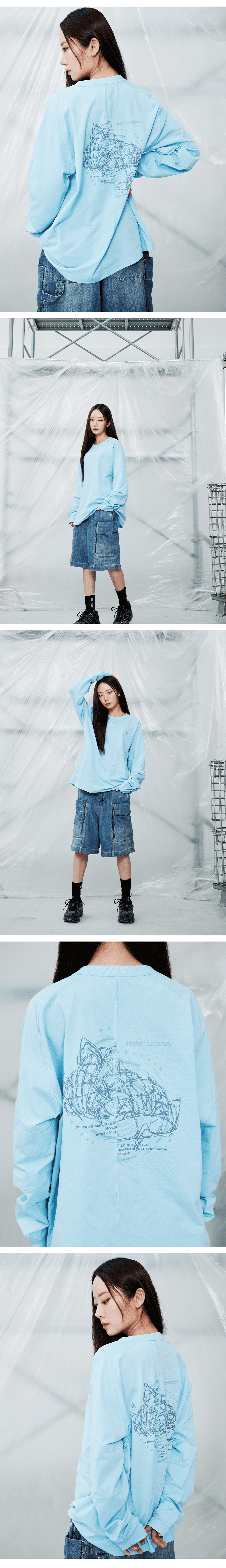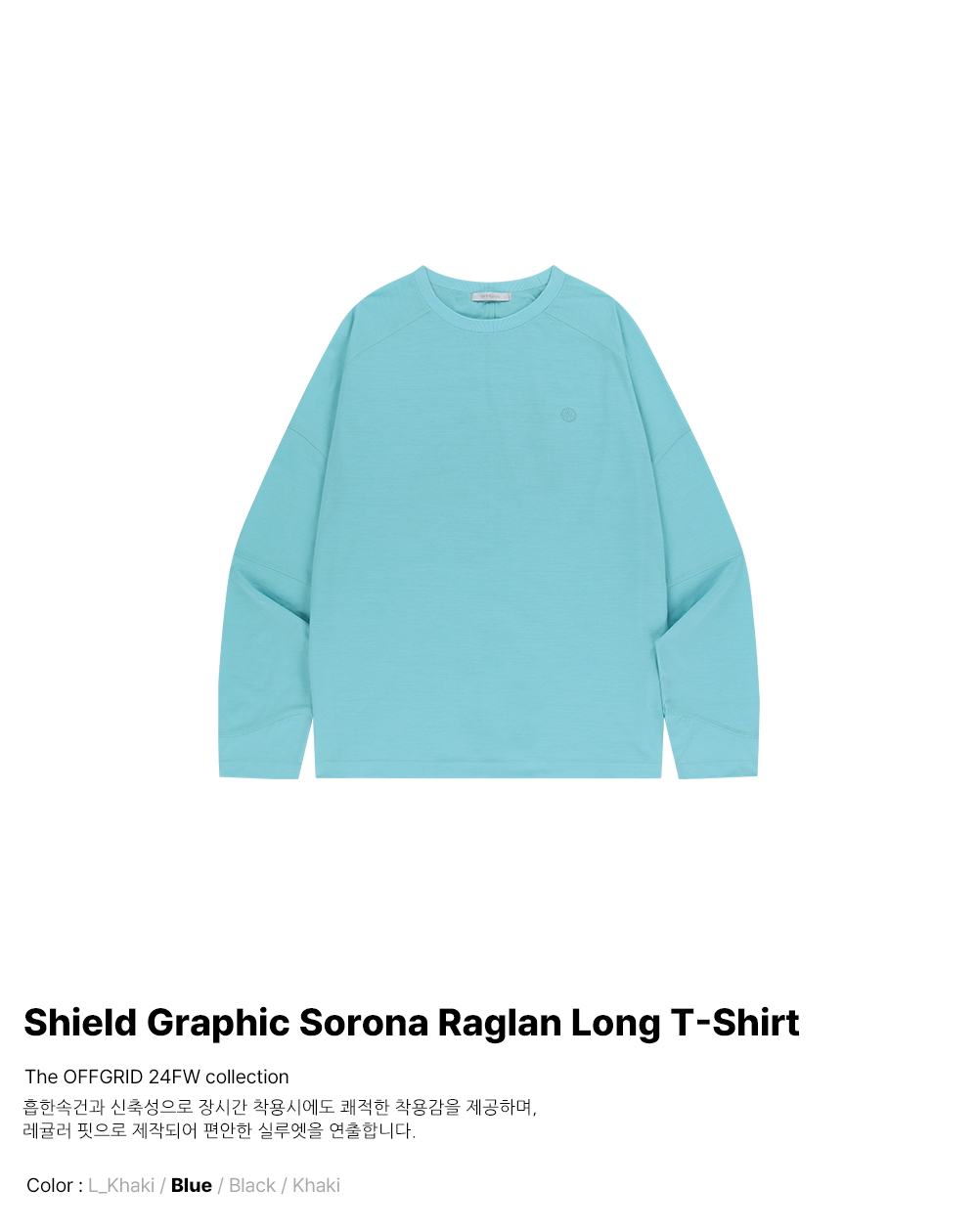 오프그리드 쉴드 그래픽 소로나 래글런 롱 티셔츠 블루