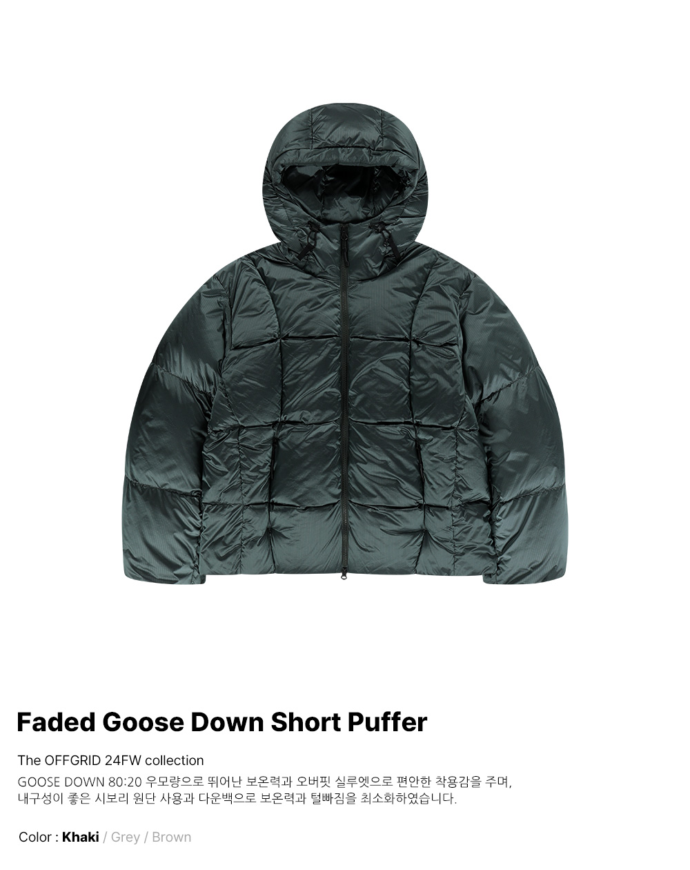 오프그리드 페이드 구스 다운 숏 푸퍼 카키