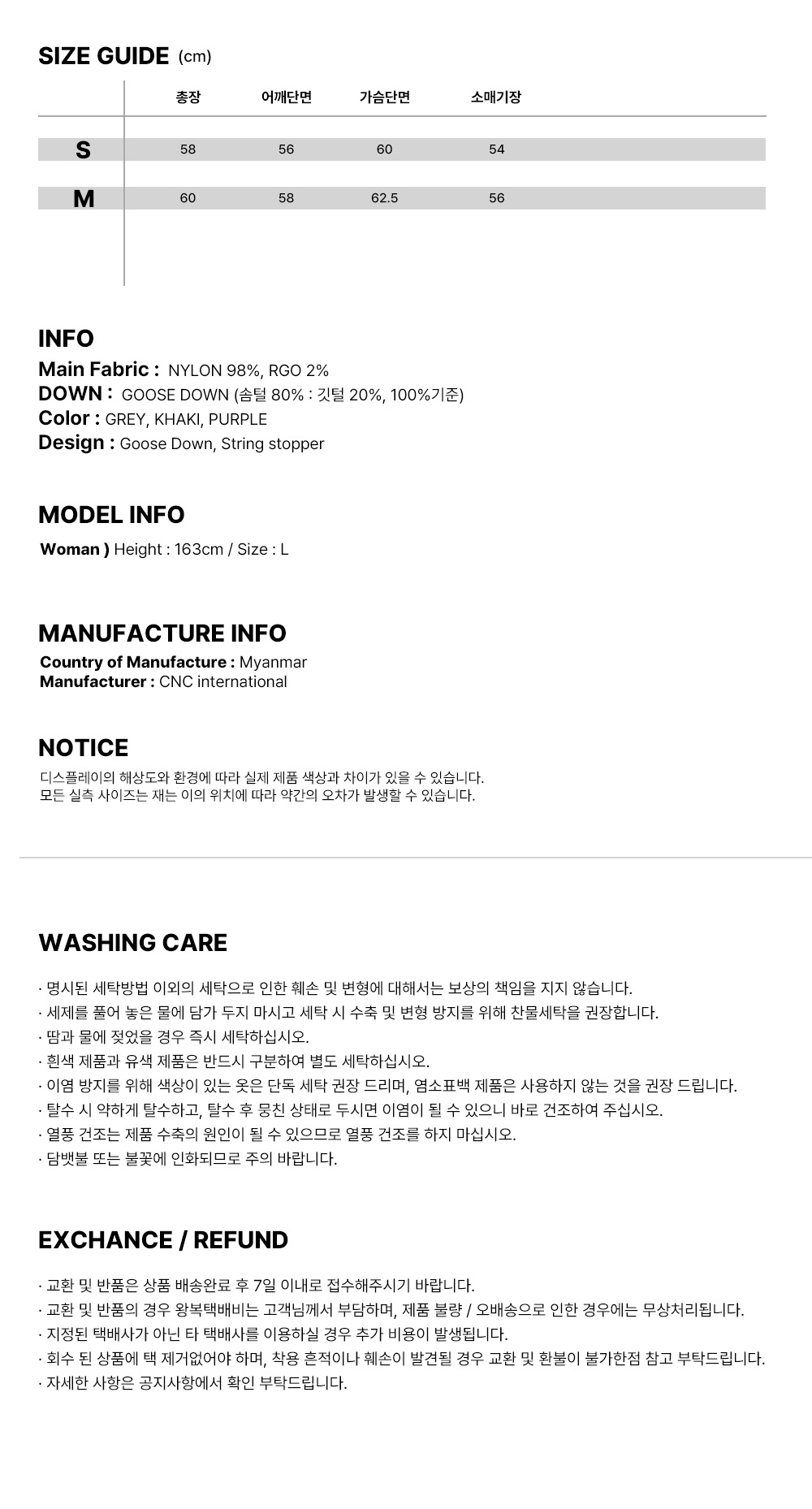 오프그리드 우먼 페이드 구스 다운 숏 푸퍼 퍼플