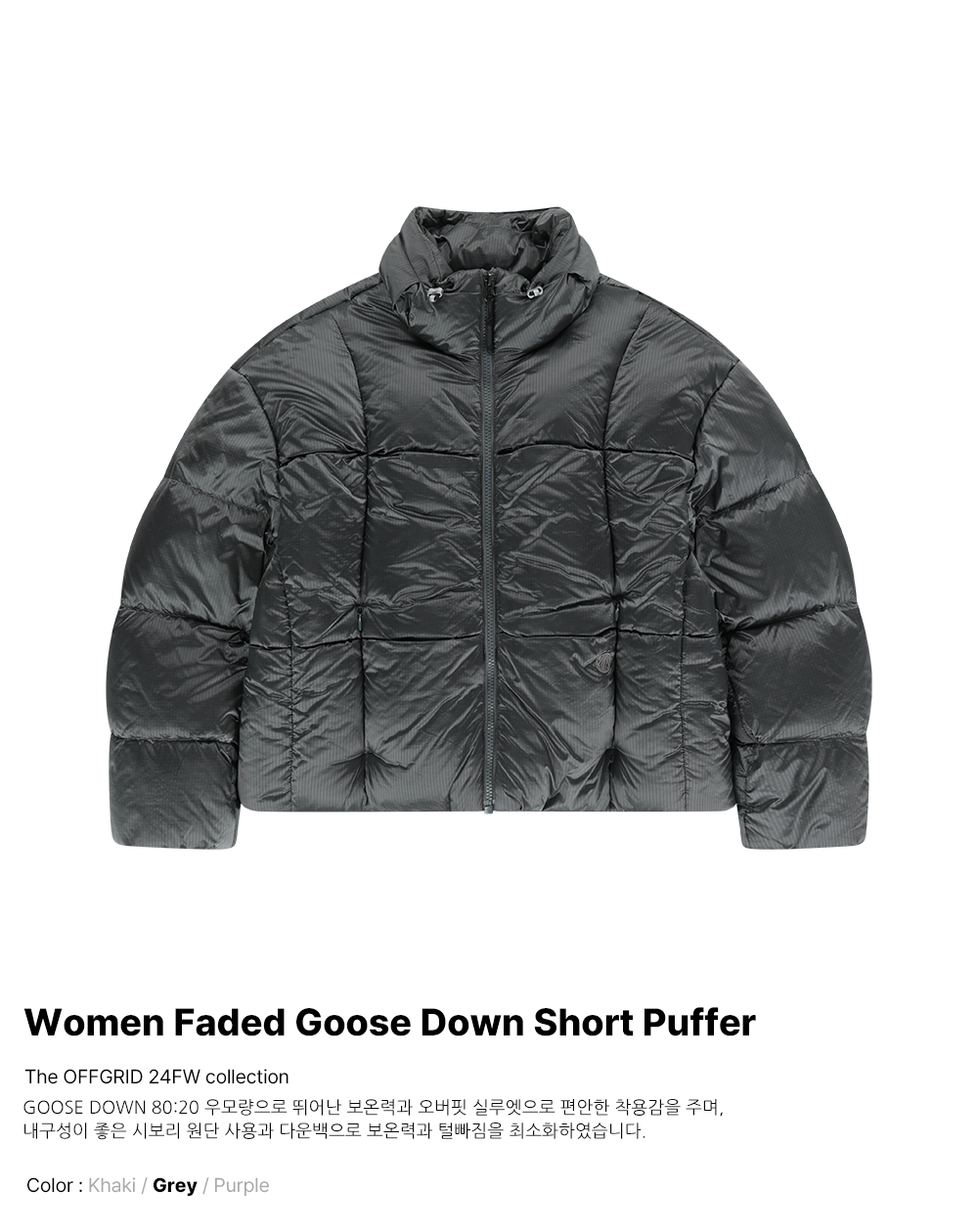 오프그리드 우먼 페이드 구스 다운 숏 푸퍼 차콜