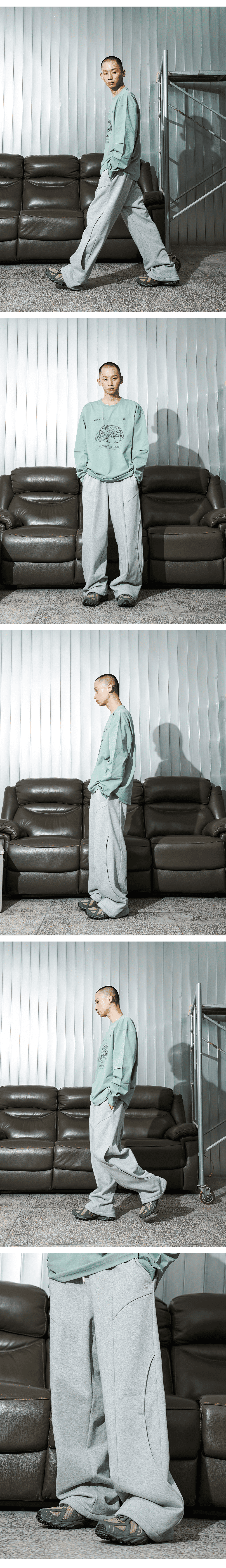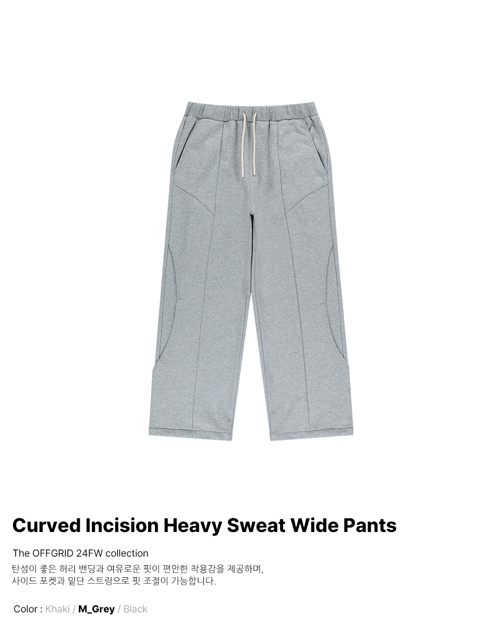 오프그리드 커브드 인시전 헤비 스웨트 와이드 팬츠 멜란지 그레이