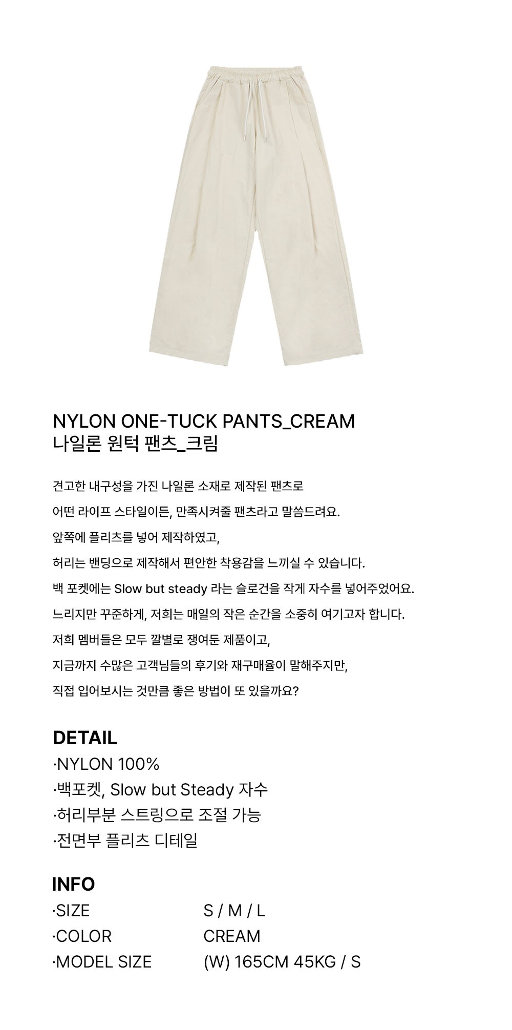 슬로우 레코드 하우스 나일론 원턱 팬츠 크림