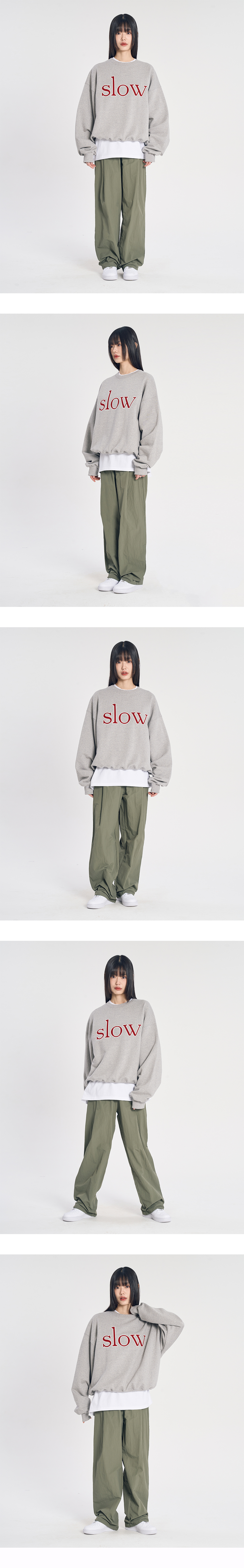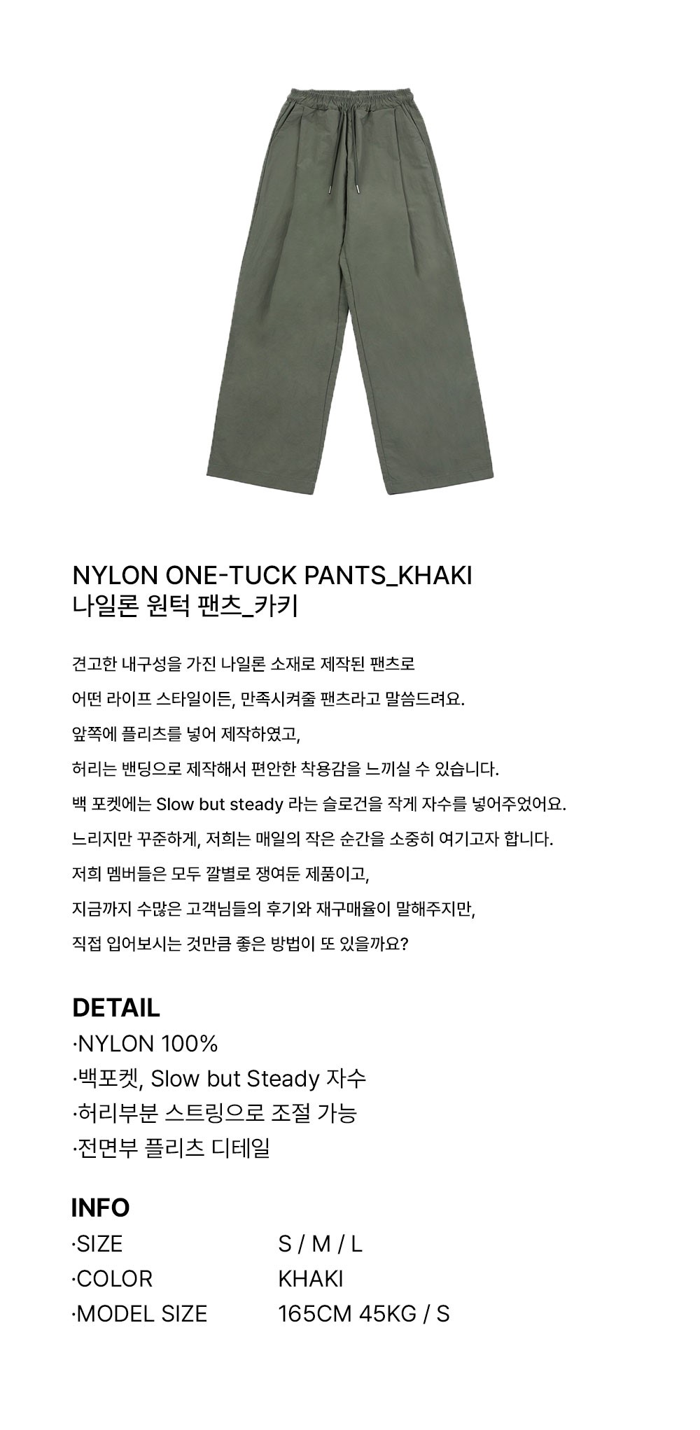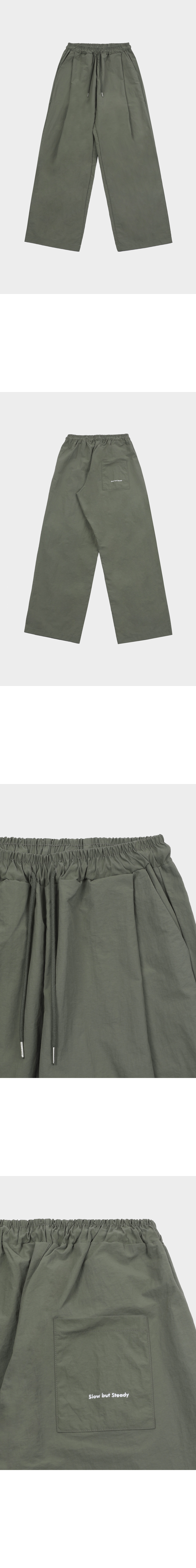 슬로우 레코드 하우스 나일론 원턱 팬츠 카키