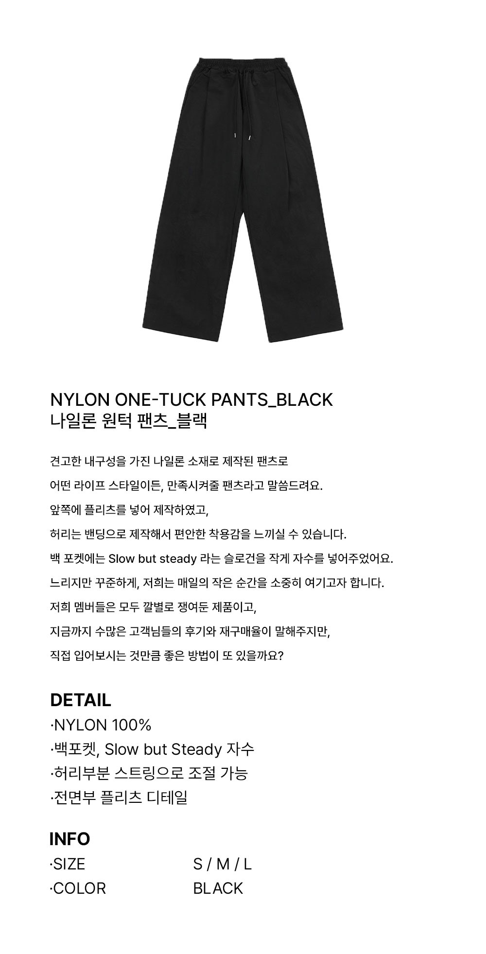 슬로우 레코드 하우스 나일론 원턱 팬츠 블랙