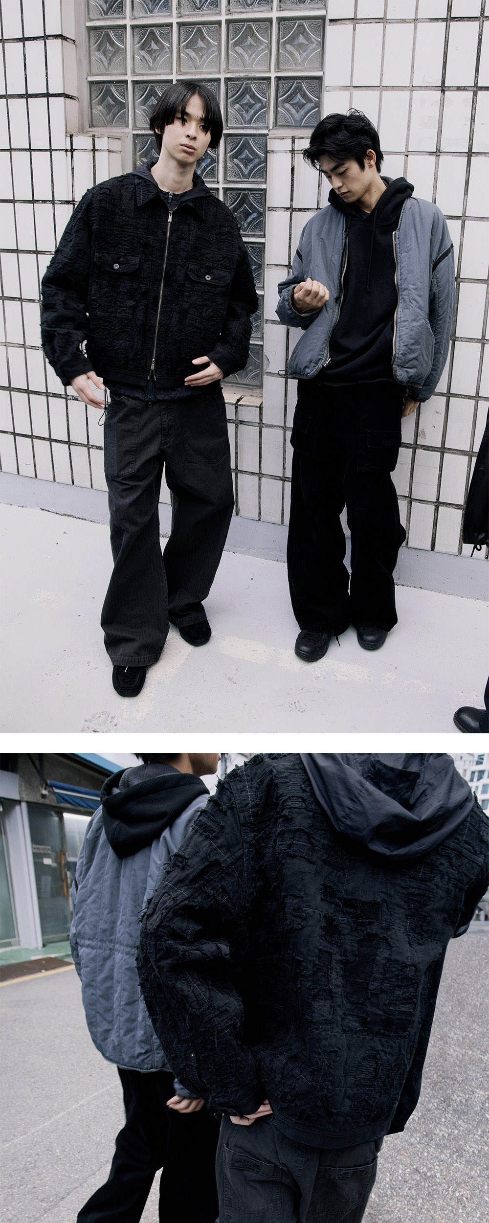 본 제품은 빈티지한 연출을 위해 강한 강도의 후가공을 진행한 상품으로, 신품 상태에서도 지퍼 및 불규칙적인 위치에 에이징 현상 및 워싱 흔적이 존재할 수 있습니다.