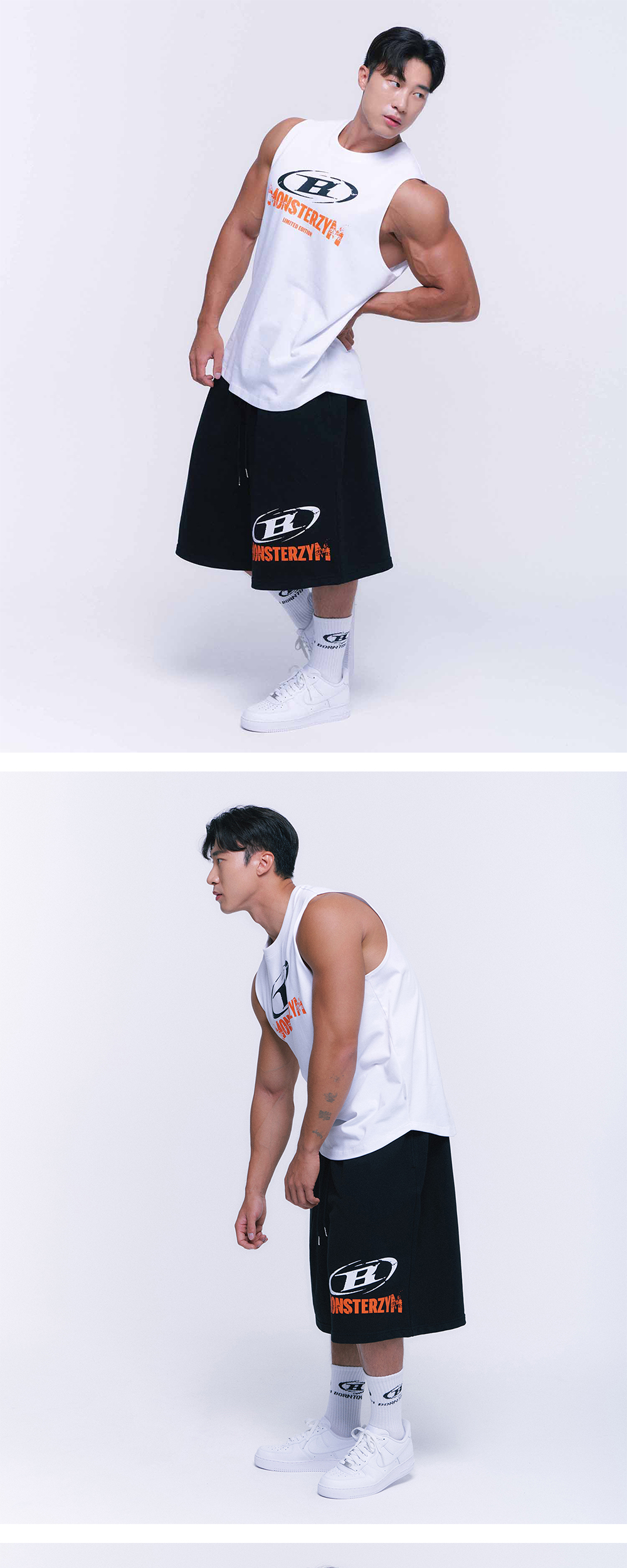 본투윈 X 몬스터짐 컴포트 핏 슬리브리스 블랙 화이트