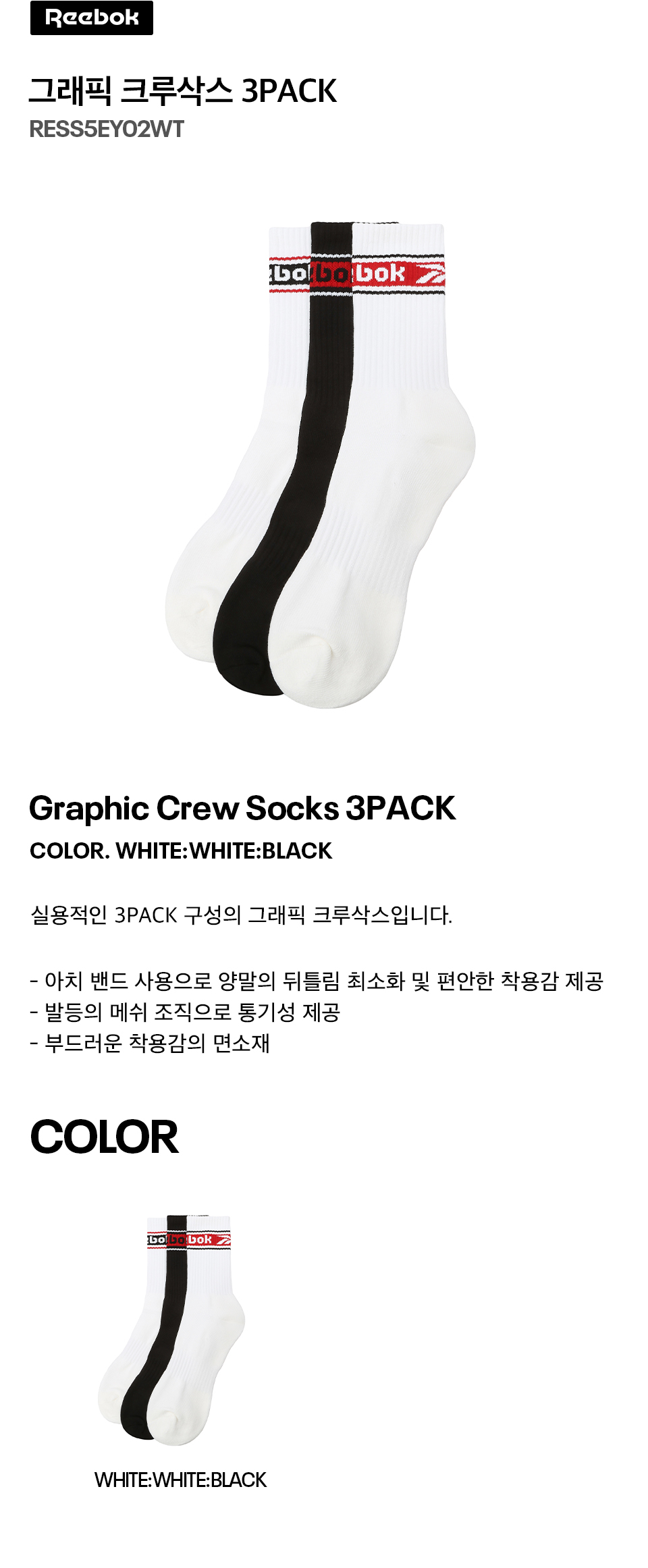 리복 그래픽 크루삭스 3PACK 화이트 화이트 블랙