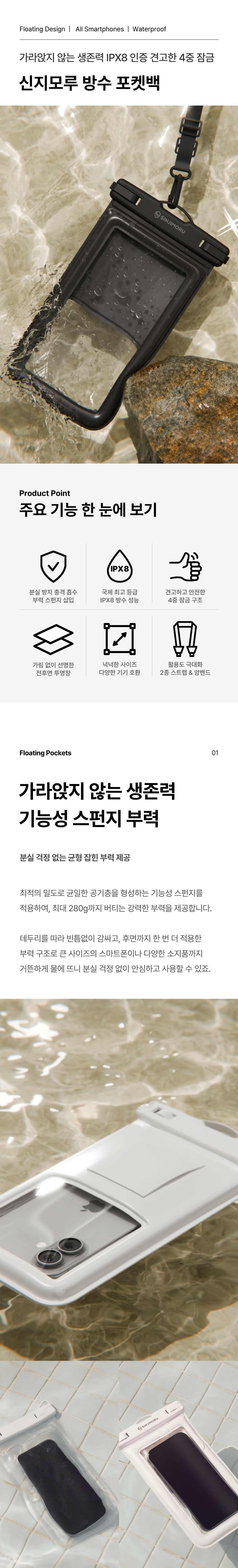 신지모루 핸드폰 방수 케이스 4중잠금 포켓 백 목걸이 스트랩 아이폰 갤럭시 방수팩 블랙