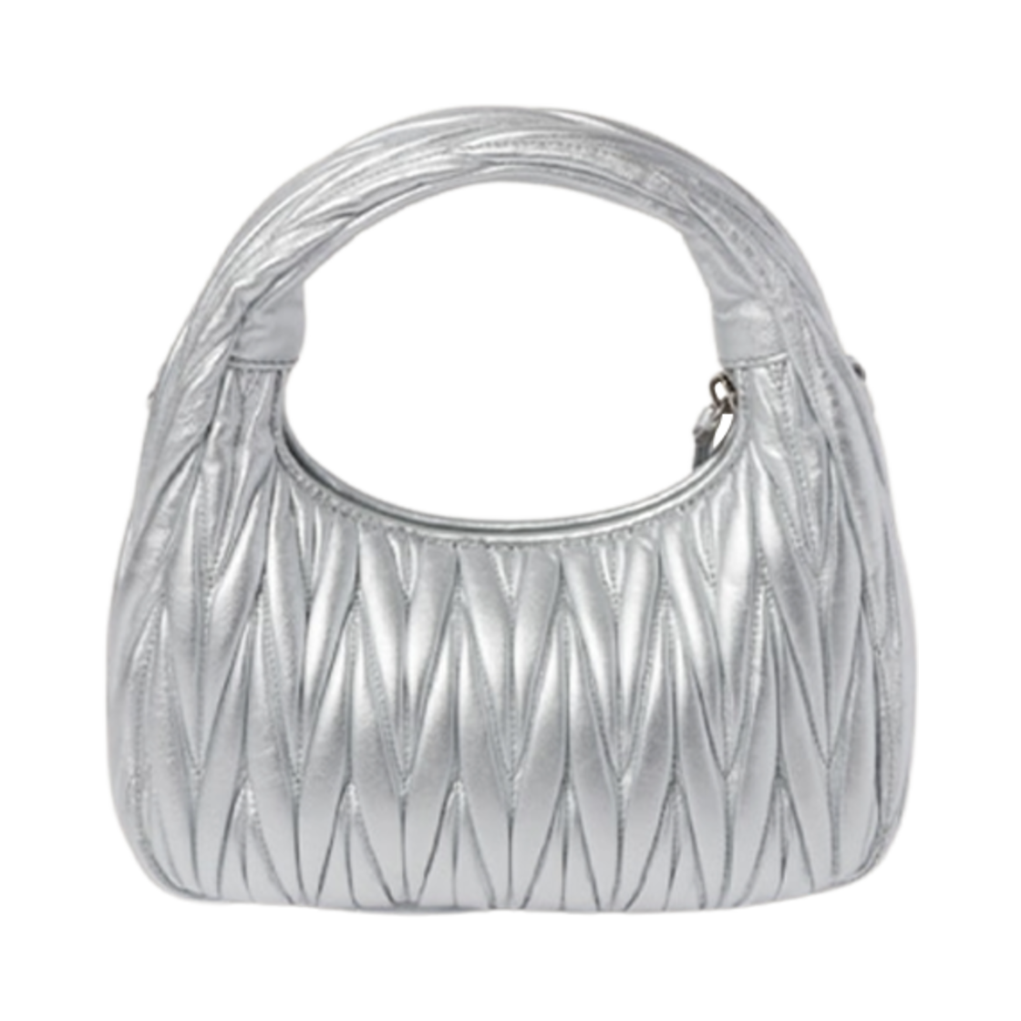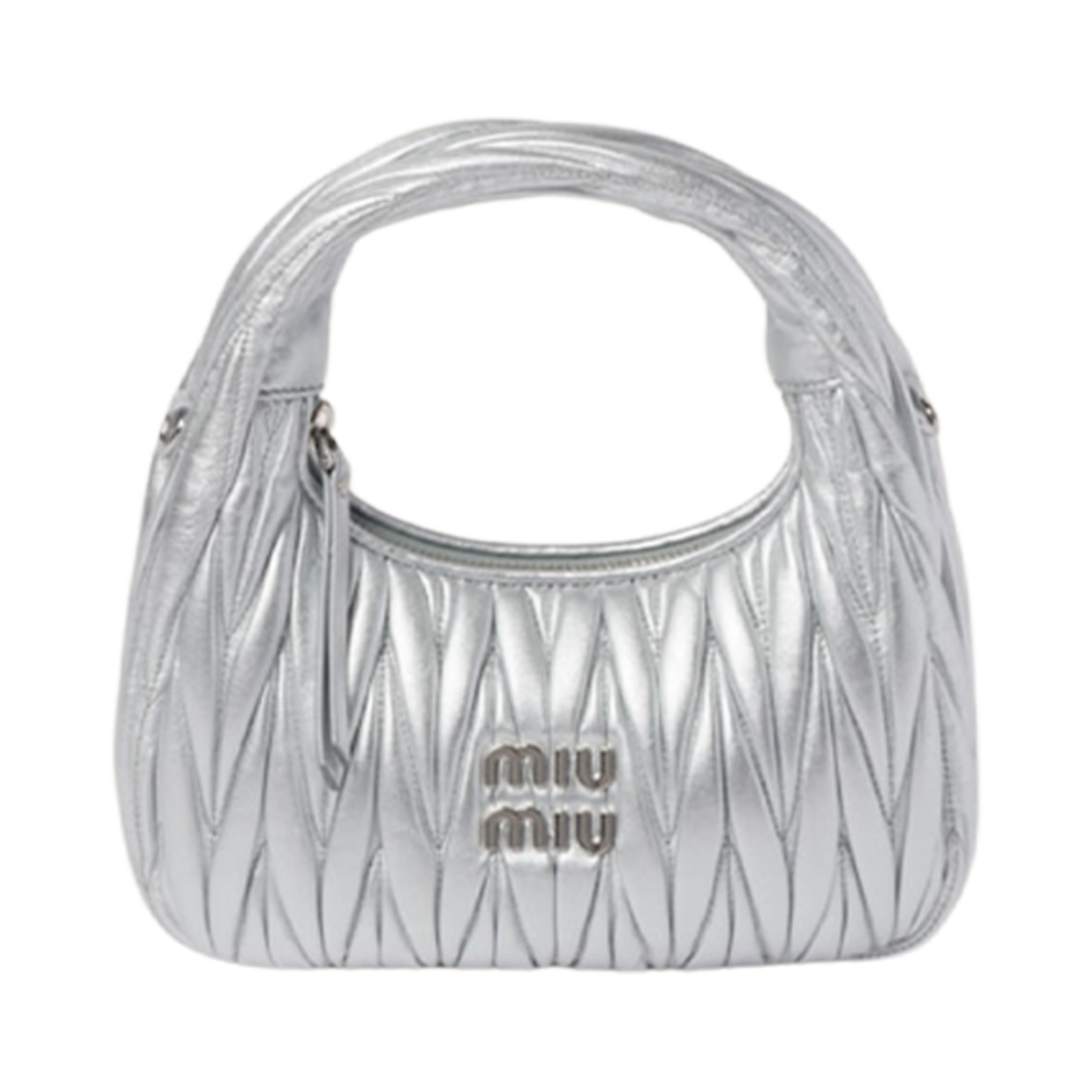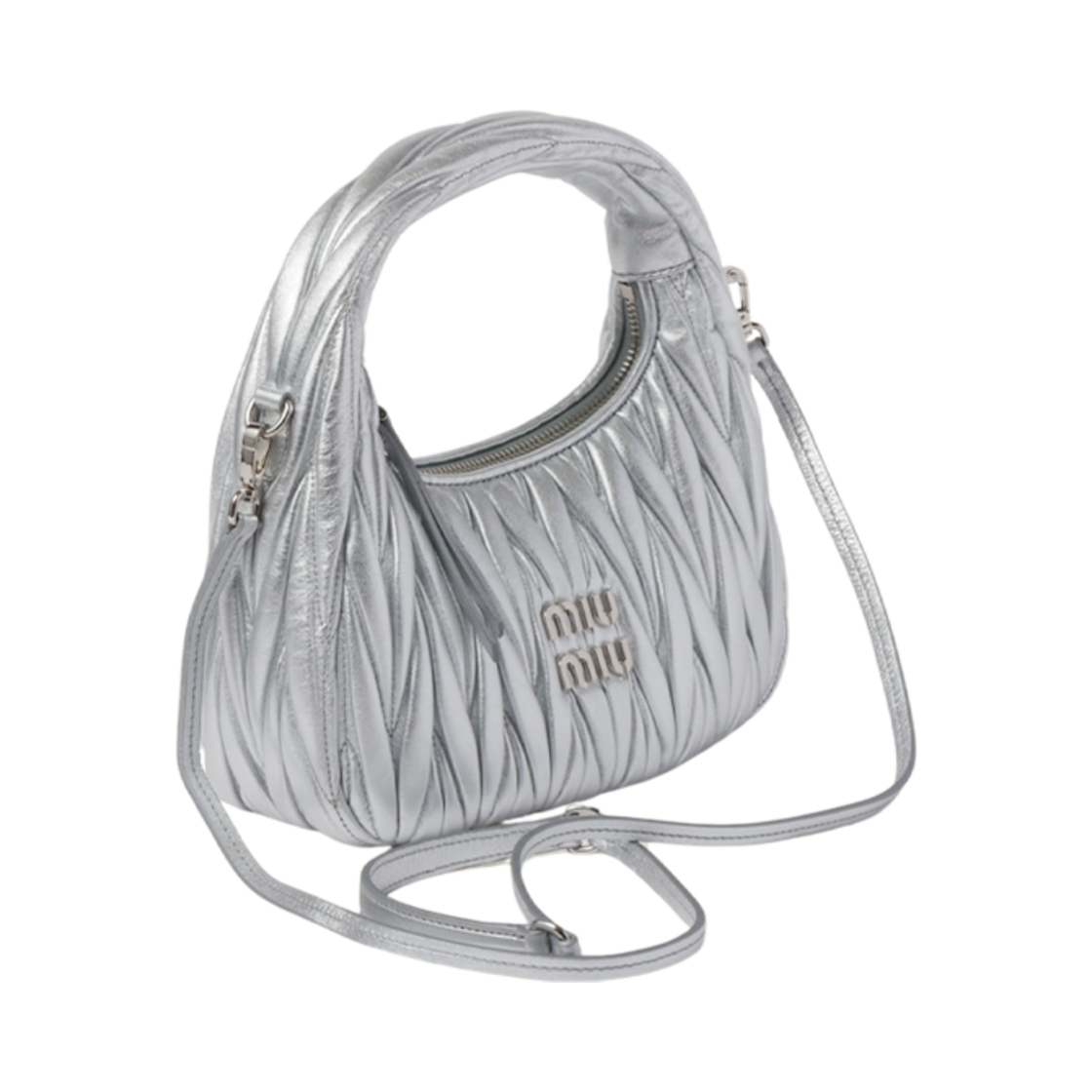 Miu Miu Wander Matelasse Nappa Leather Small Hobo Bag Silver