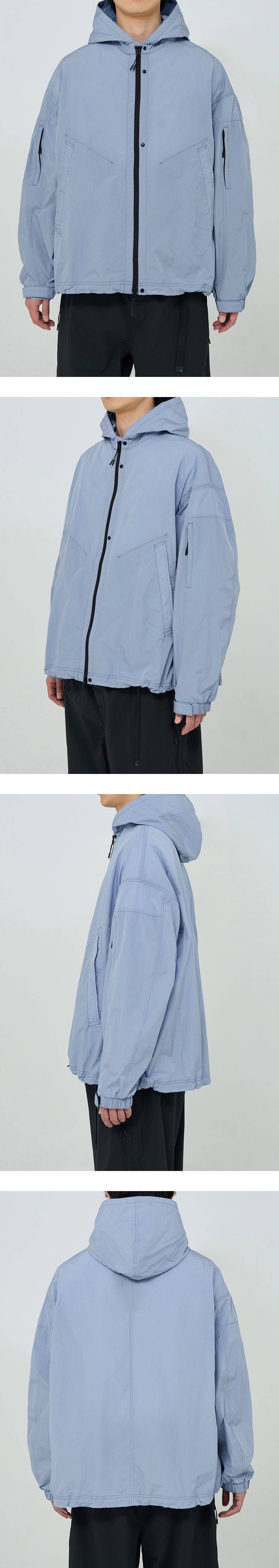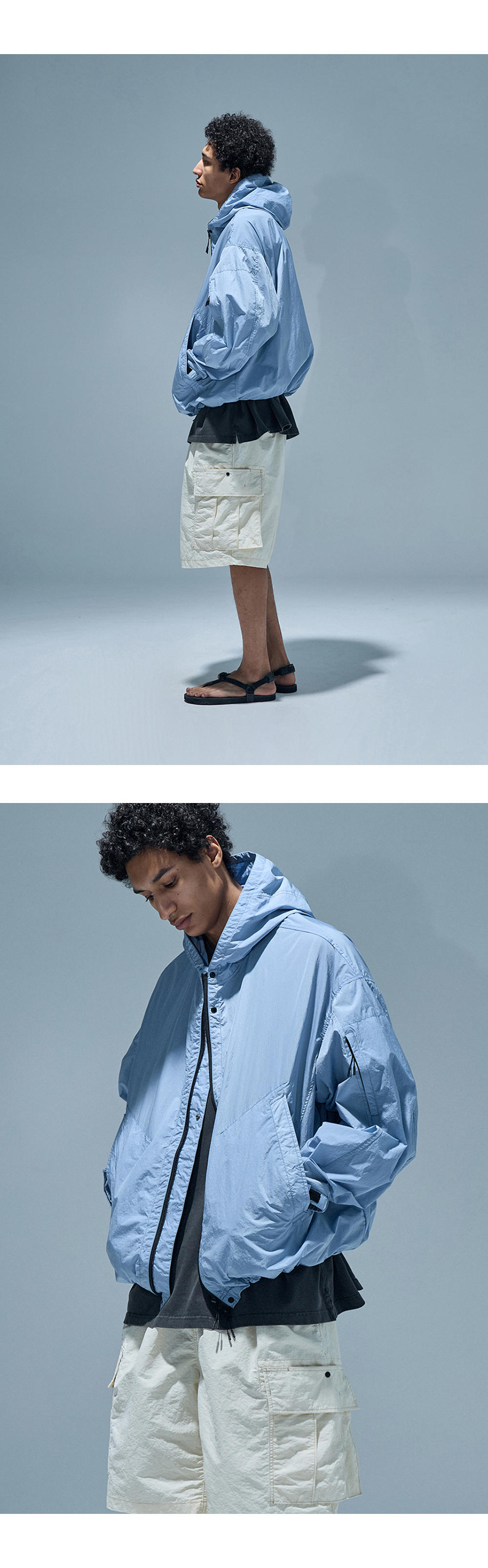 도심과 아웃도어에서 활용 가능한 경량 파카 · 넉넉한 느낌의 루즈한 실루엣. · 가볍고 부드러운 나일론 원단 사용. · 투웨이 지퍼와 스냅 버튼이 달려있는 앞여밈 사양. · 스냅 여밈의 사이드포켓 사양. · 작은 소지품을 보관할 수 있는 소매 지퍼 포켓. · 벨크로로 사이즈 조절이 가능한 소매 커프스 사양. · 바람을 막아주며, 실루엣 조절이 가능한 밑단 스트링 사양.