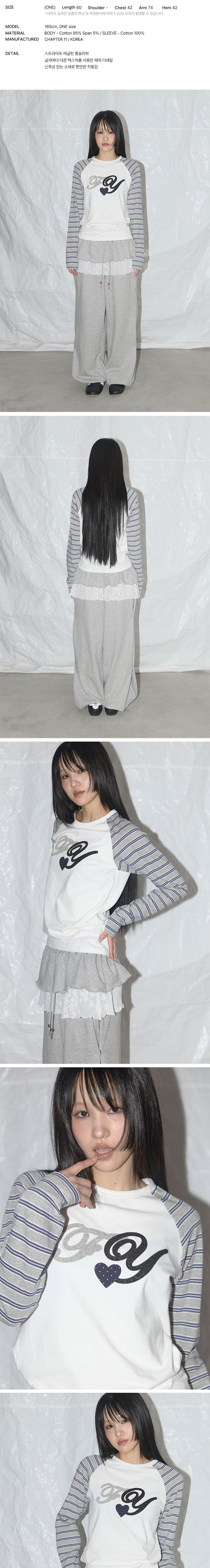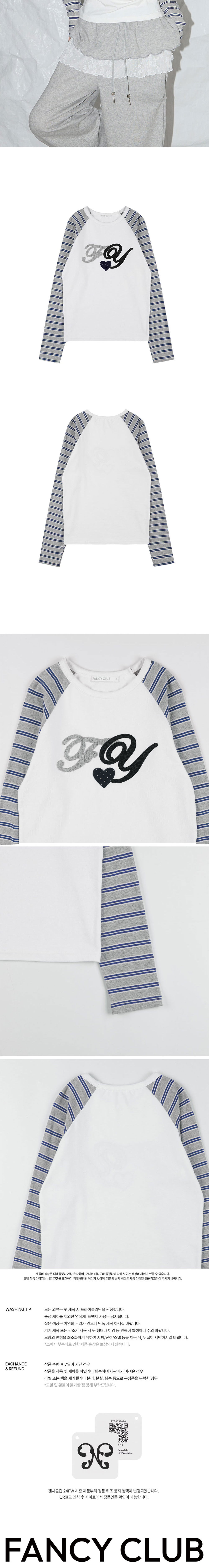 팬시클럽 FY 패치 스트라이프 레글런 티 화이트