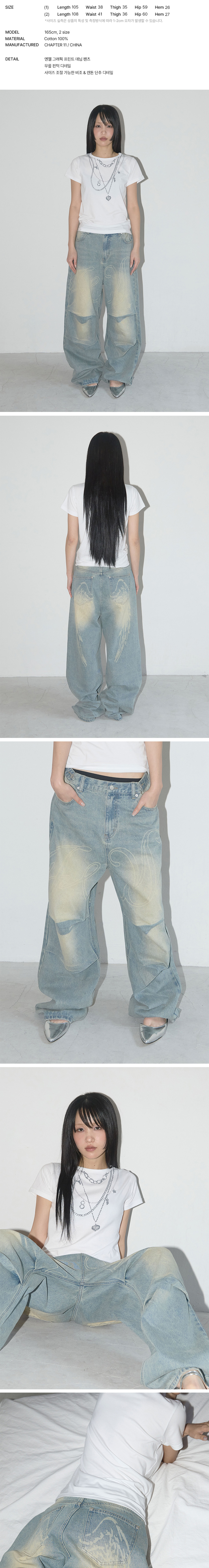 팬시클럽 엔젤 빈티지 워싱 핀턱팬츠 블루